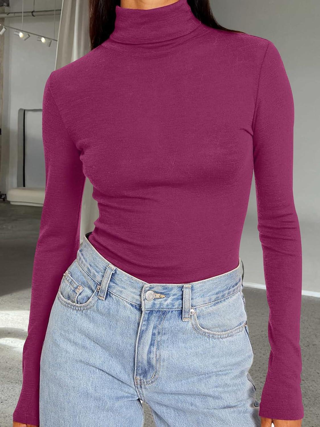 Trendy Queen Women’s Turtleneck Long Sleeve Shirts Fall Fashion Basic Thermal Underwear Tops Winter Clothes 2025(Fuchsia)