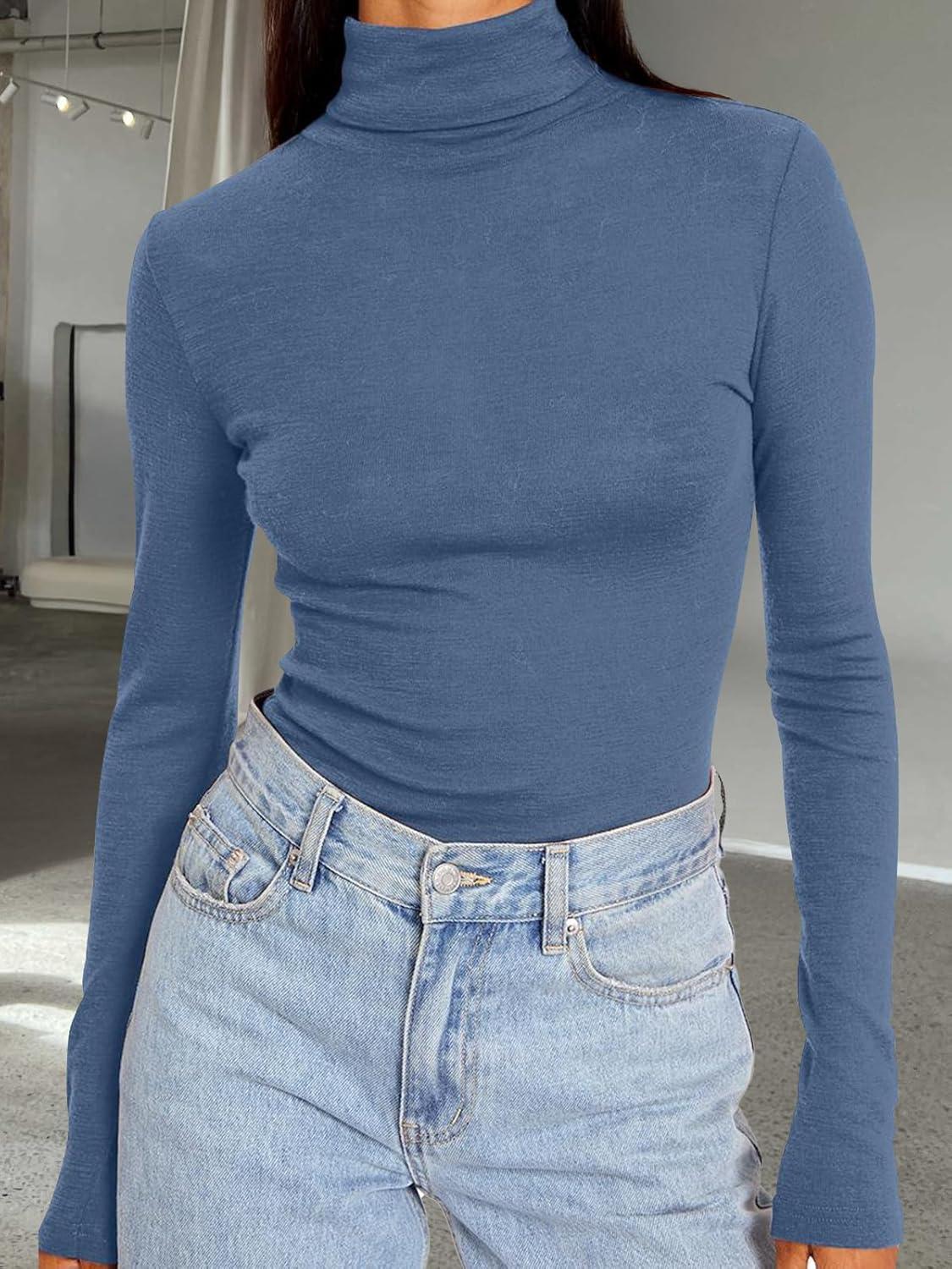 Trendy Queen Women’s Turtleneck Long Sleeve Shirts Fall Fashion Basic Thermal Underwear Tops Winter Clothes 2025(Haze Blue)