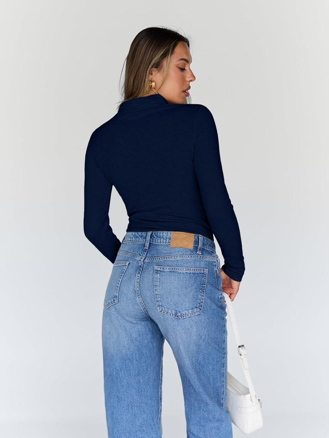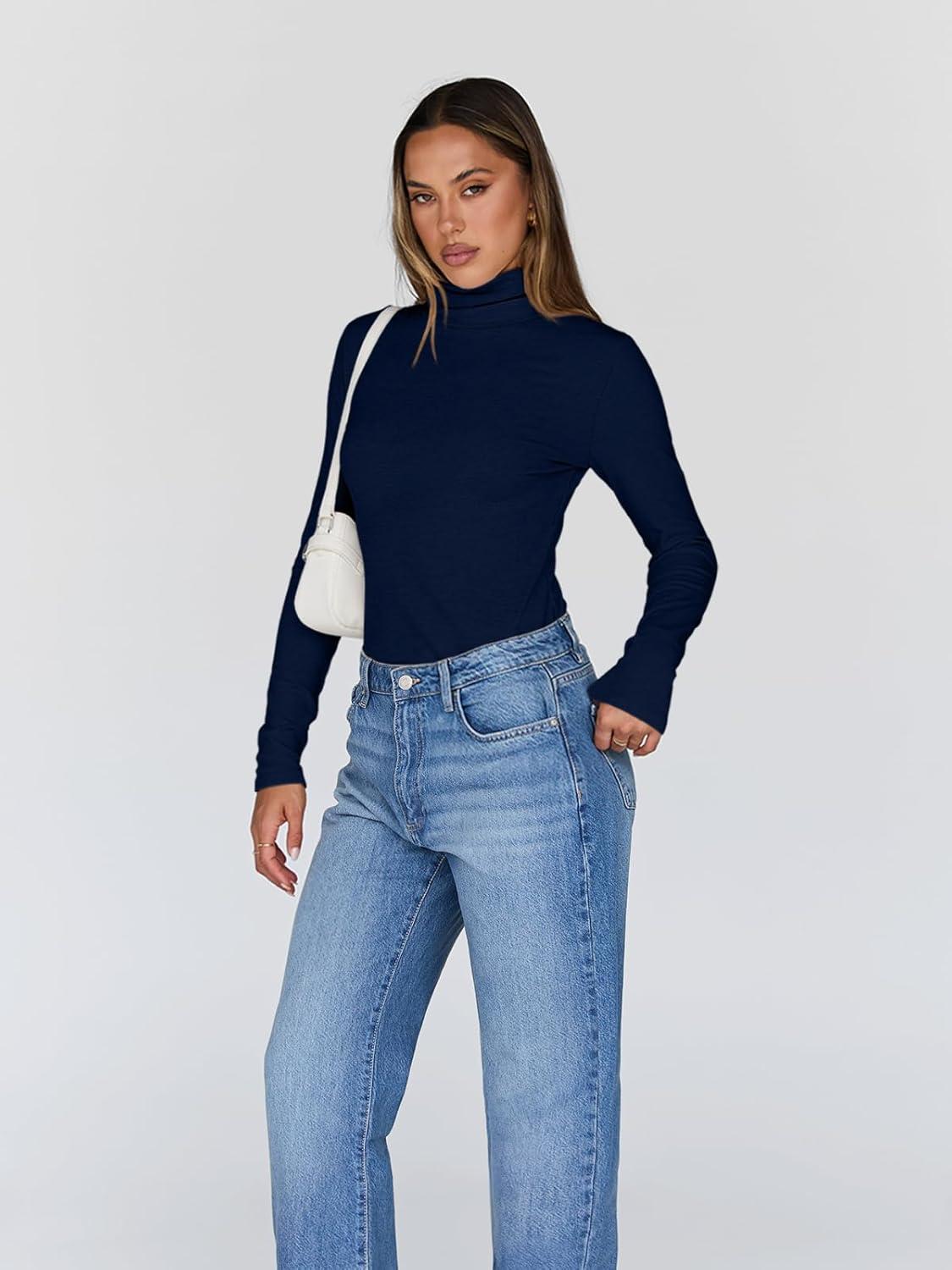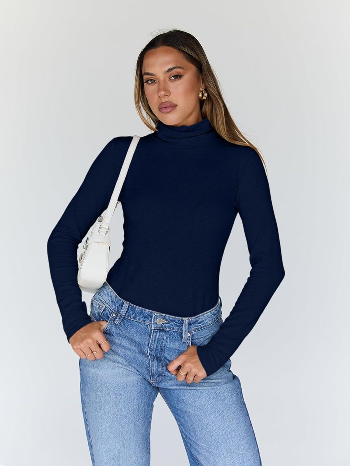 Trendy Queen Women’s Turtleneck Long Sleeve Shirts Fall Fashion Basic Thermal Underwear Tops Winter Clothes 2025(Navy)