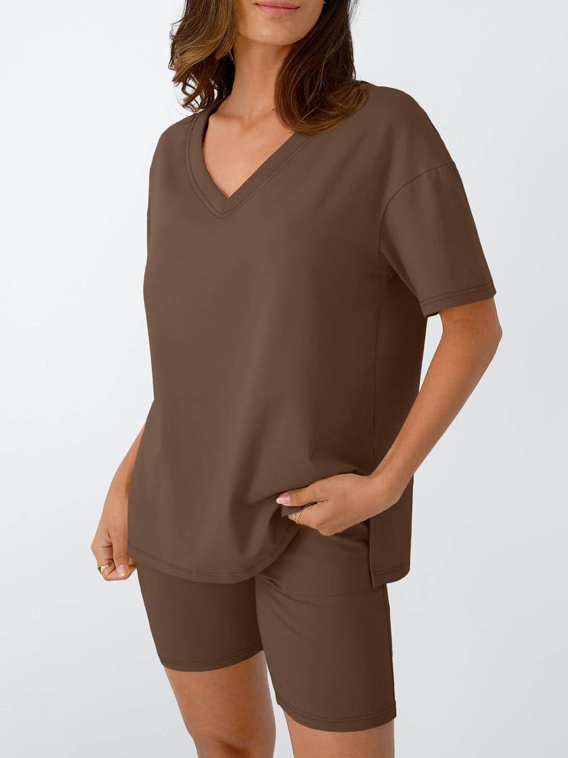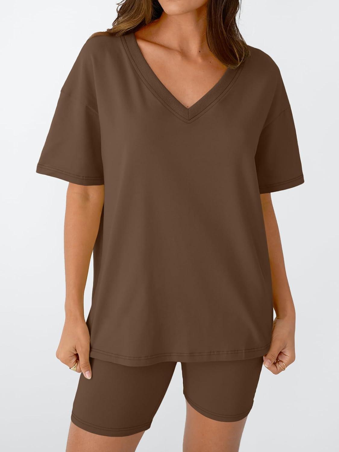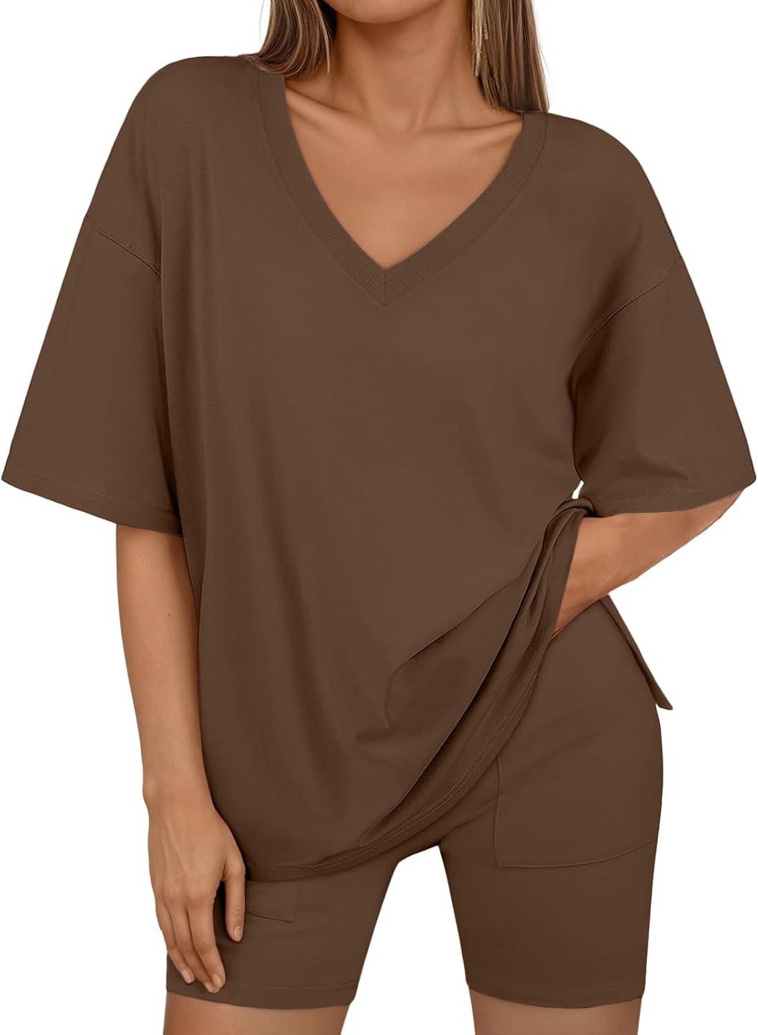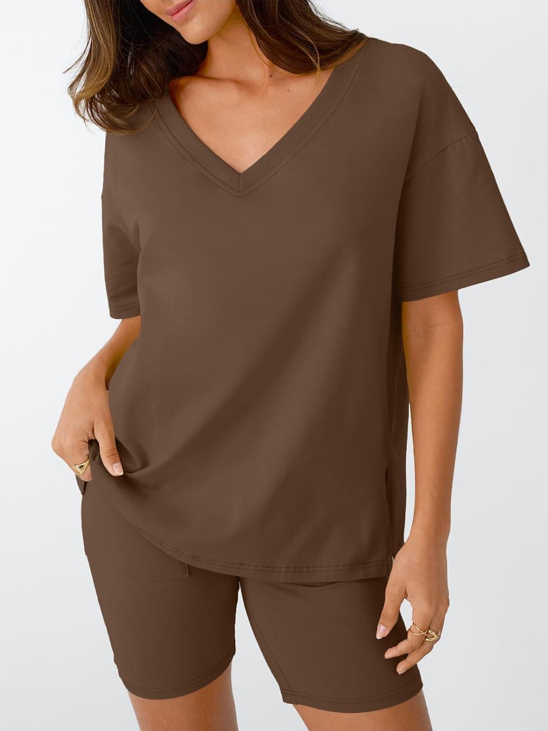 Trendy Queen Womens Two Piece Lounge Sets Summer Outfits 2025 Spring Fashion Vacation Tops Shorts Matching Tracksuits(Brown)