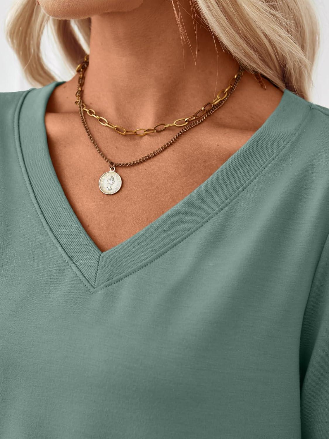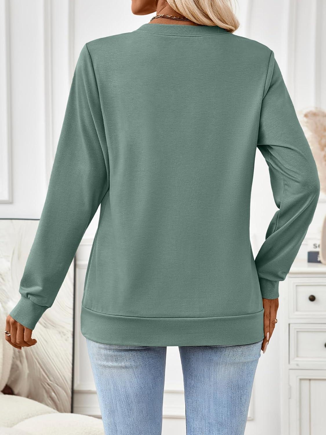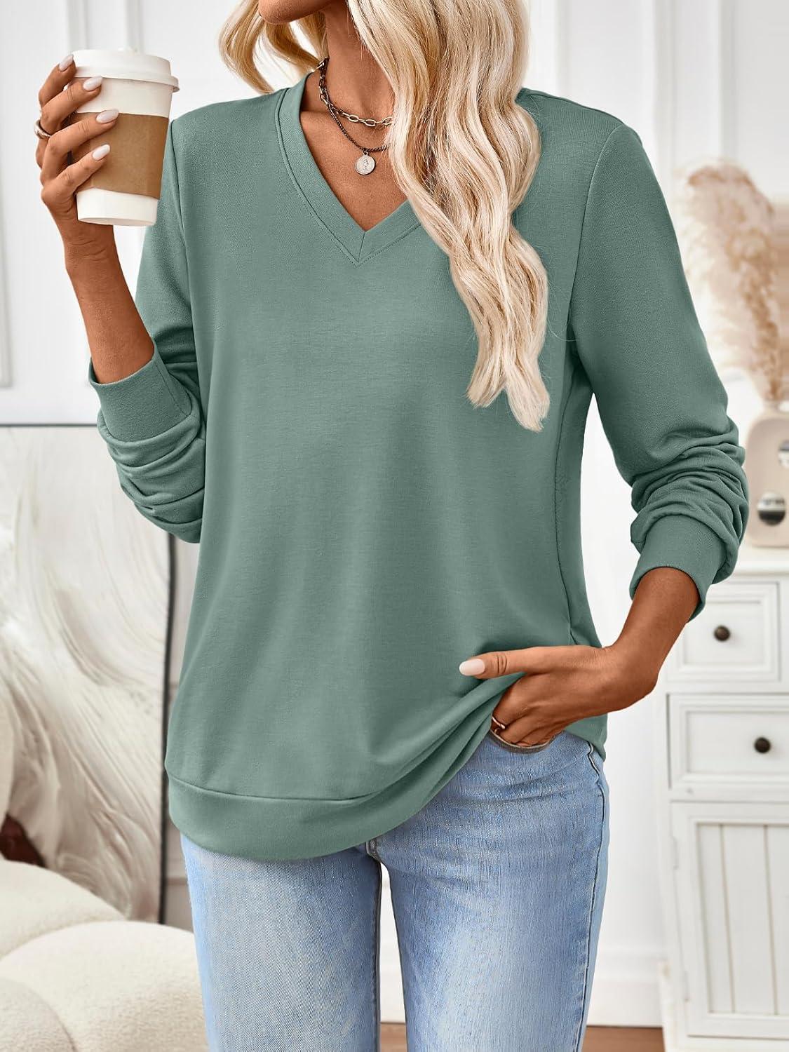 Trendy Queen Womens V Neck Long Sleeve Shirts Lightweight Thermal Pullover Tops Soft Cozy Fall Winter Casual Outfit 2025(Green)