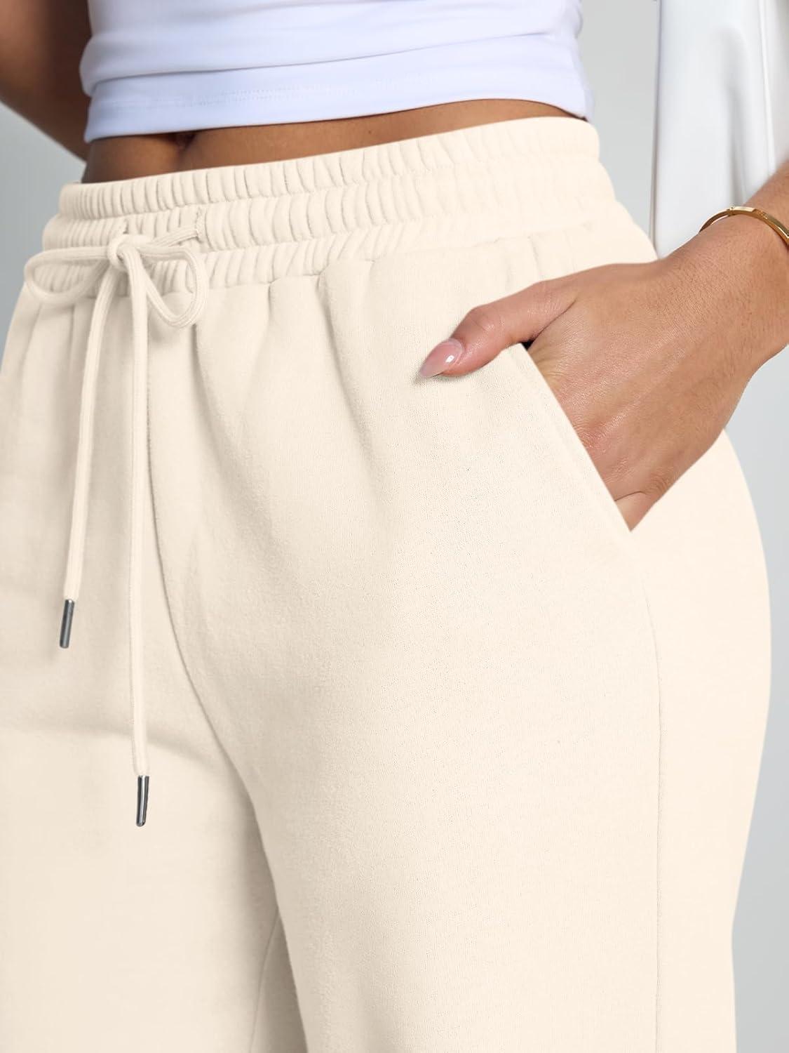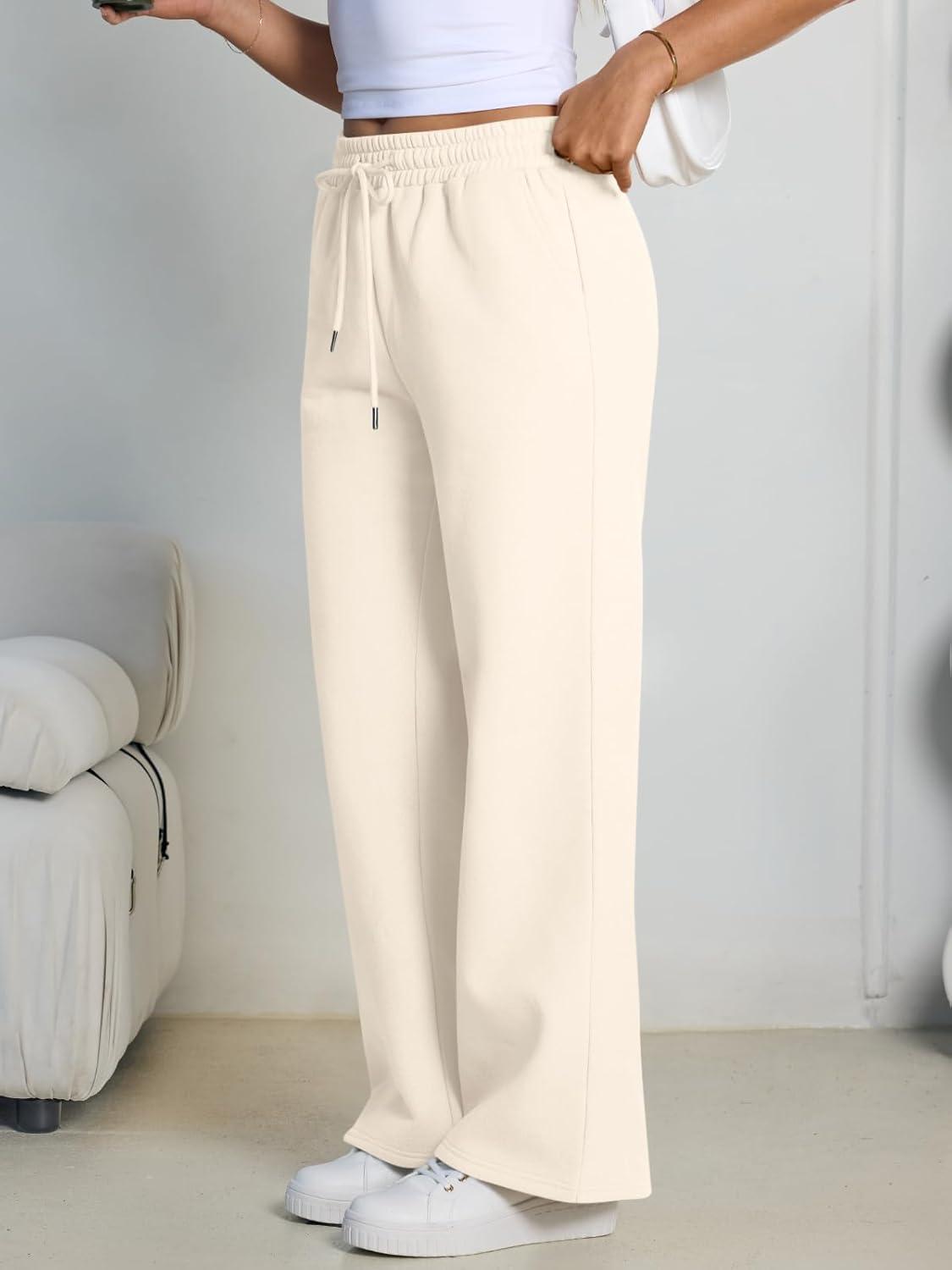 Trendy Queen Womens Wide Leg Fleece Lined Sweatpants Winter Baggy Lounge Travel Pants Fashion Outfits 2025 Joggers Clothes(Apricot)