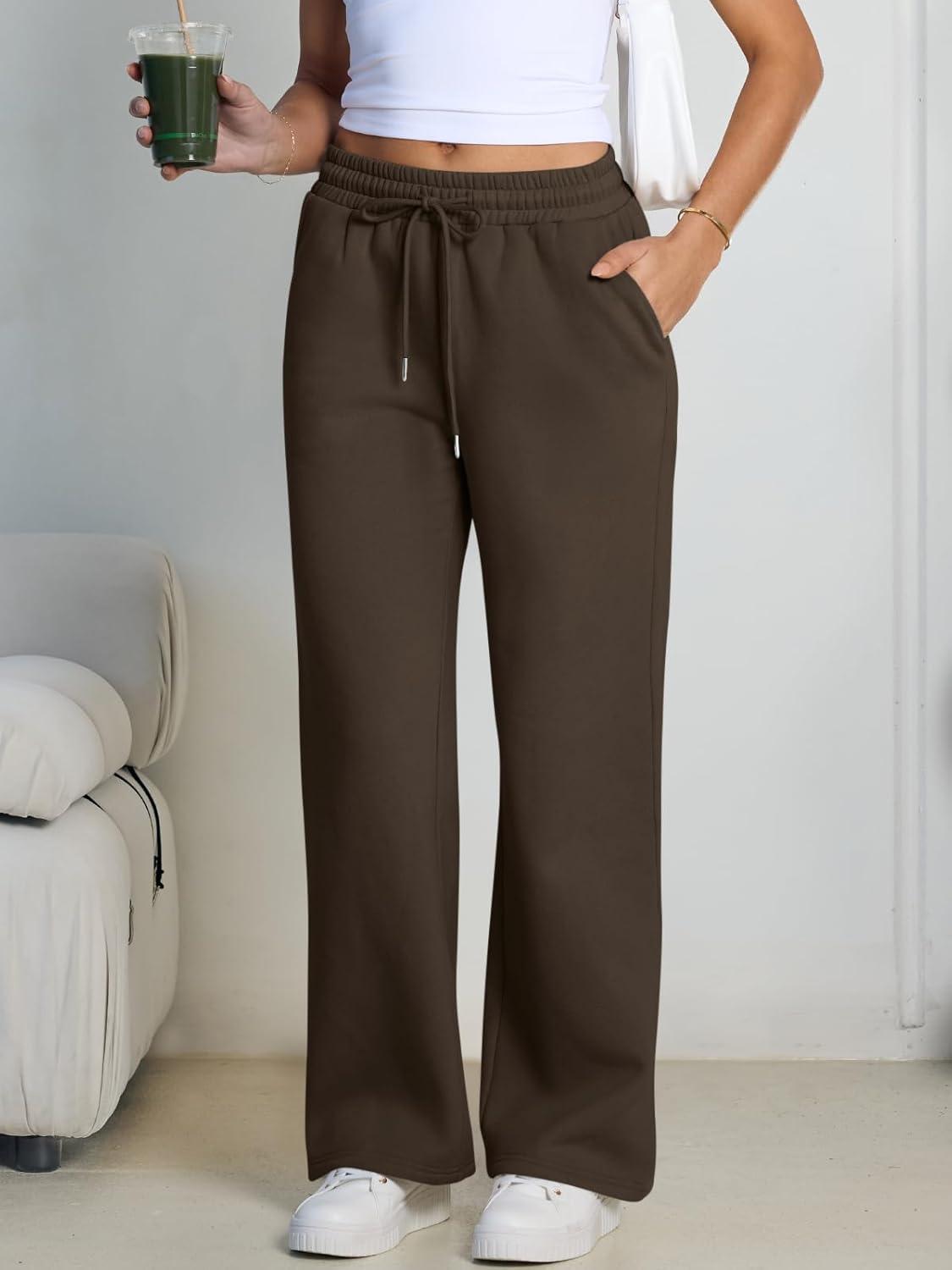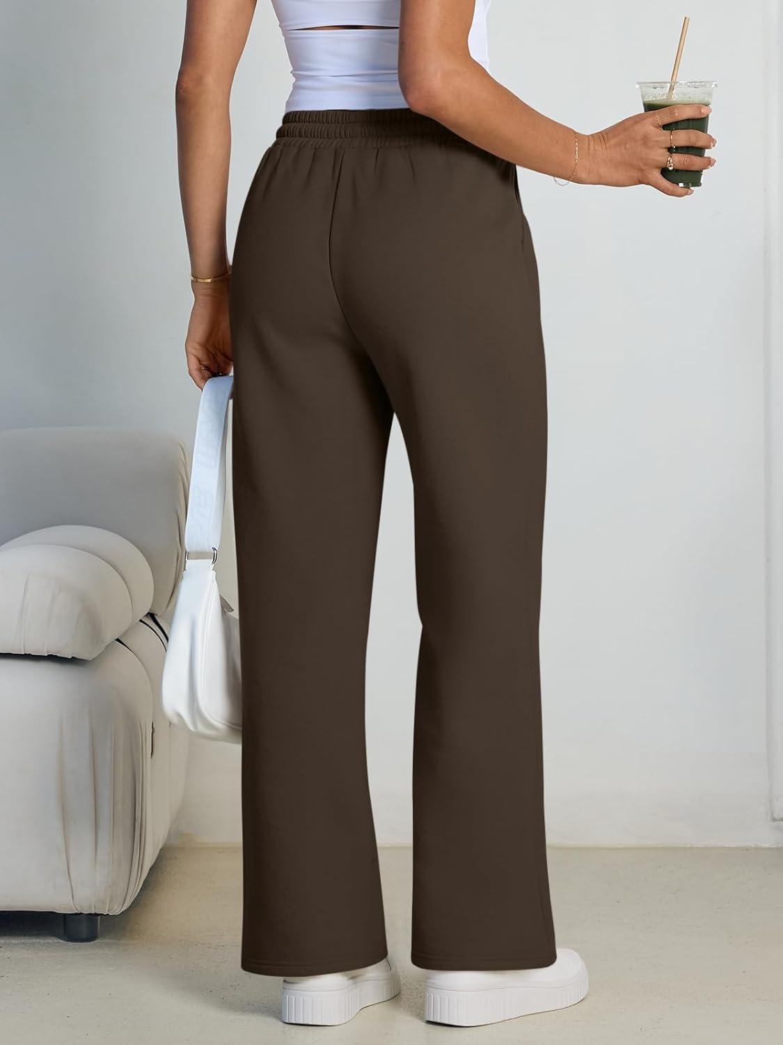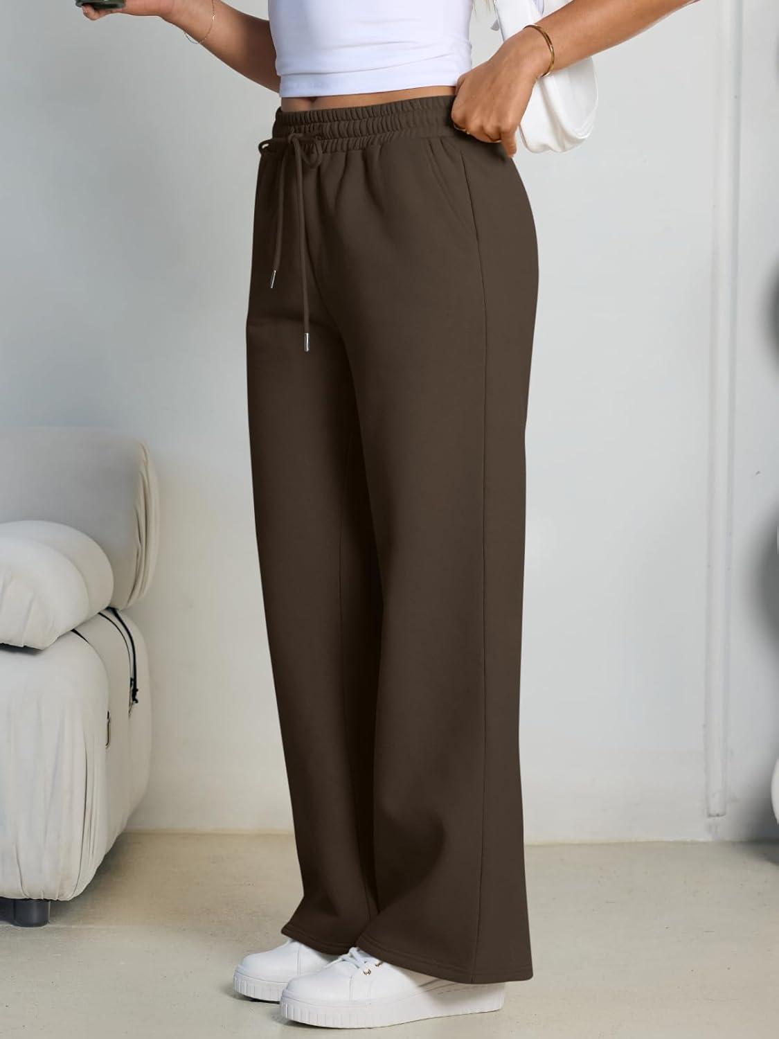Trendy Queen Womens Wide Leg Fleece Lined Sweatpants Winter Baggy Lounge Travel Pants Fashion Outfits 2025 Joggers Clothes(Brown)