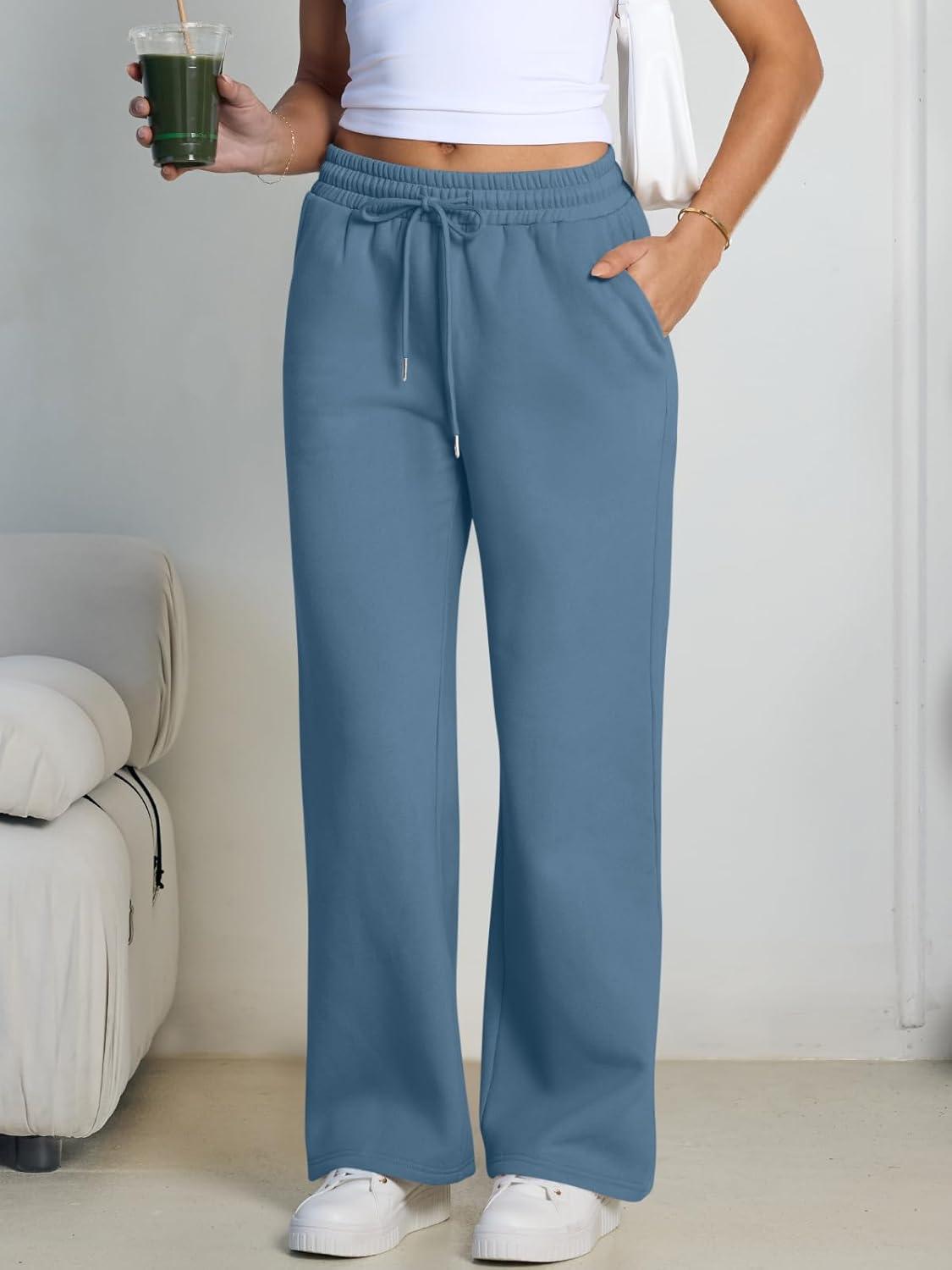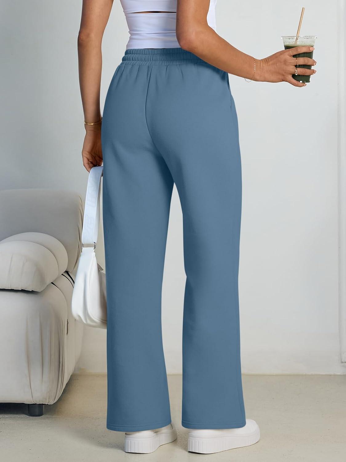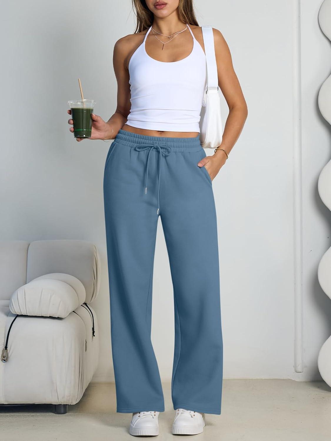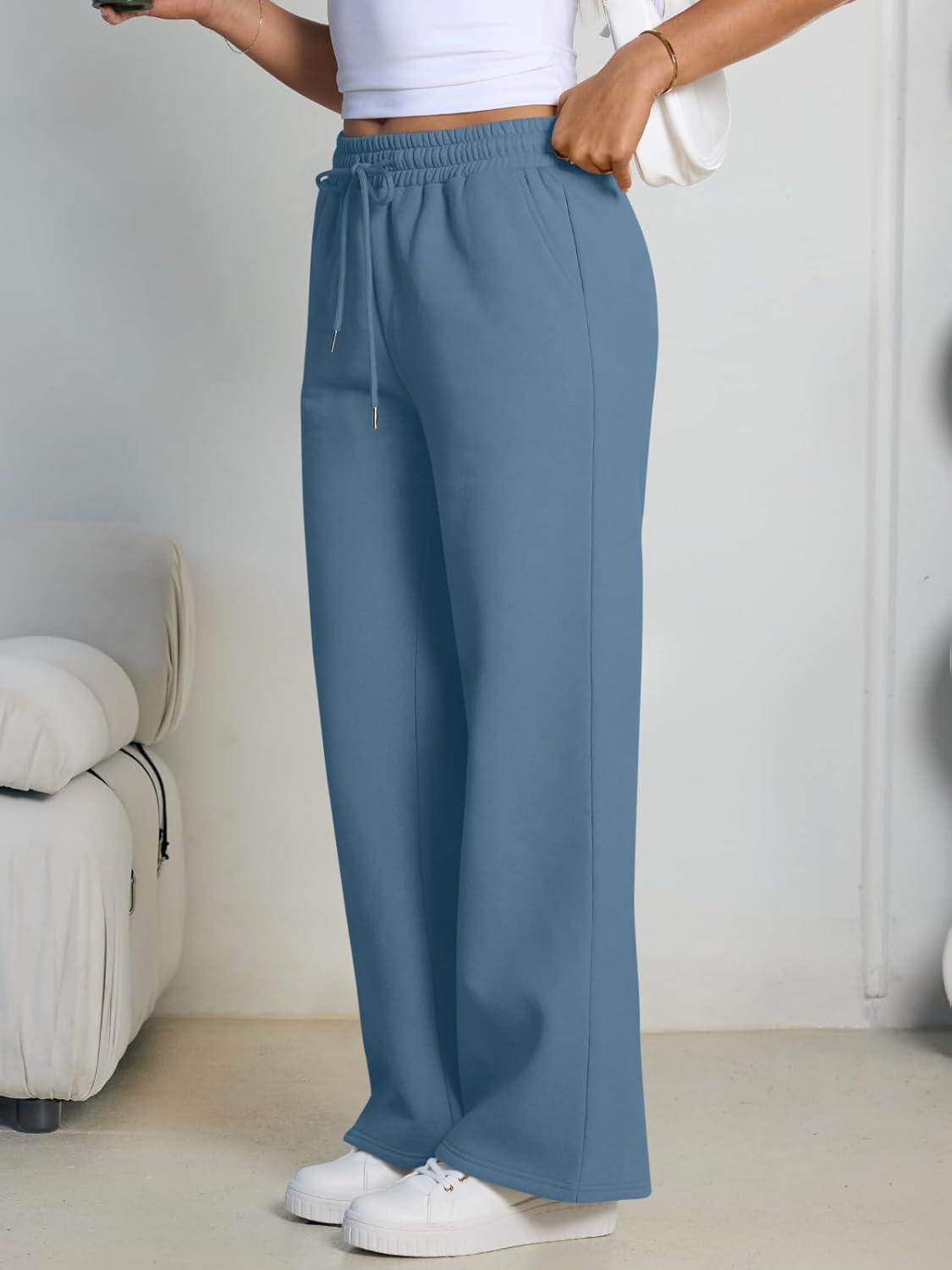 Trendy Queen Womens Wide Leg Fleece Lined Sweatpants Winter Baggy Lounge Travel Pants Fashion Outfits 2025 Joggers Clothes(Hazeblue)