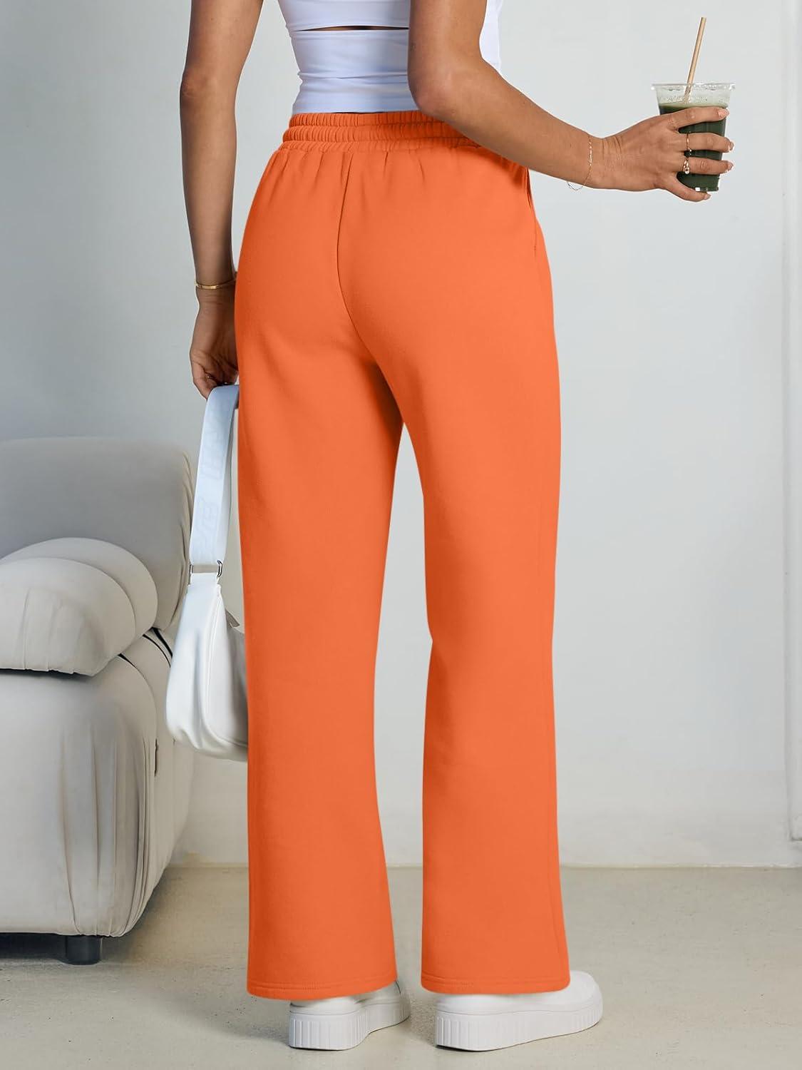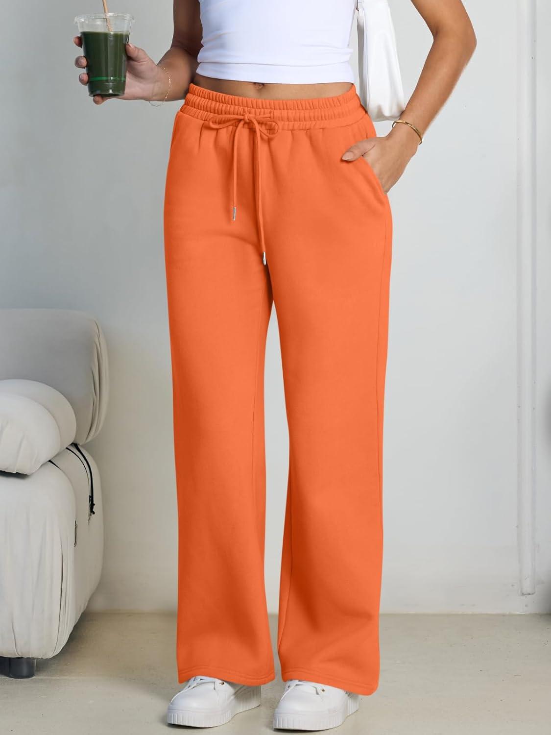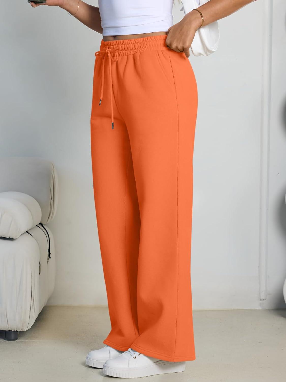 Trendy Queen Womens Wide Leg Fleece Lined Sweatpants Winter Baggy Lounge Travel Pants Fashion Outfits 2025 Joggers Clothes(Orange)