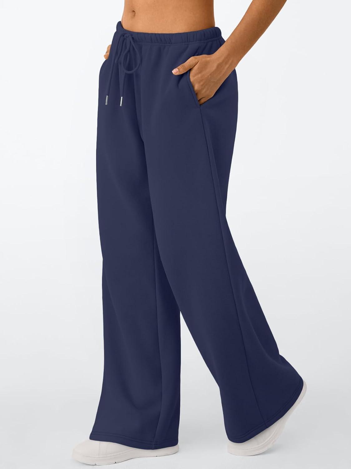 Trendy Queen Womens Wide Leg Sweatpants Baggy Drawstring Low Rise Lounge Pants 2025 Fall Joggers with Pockets(Navyblue)