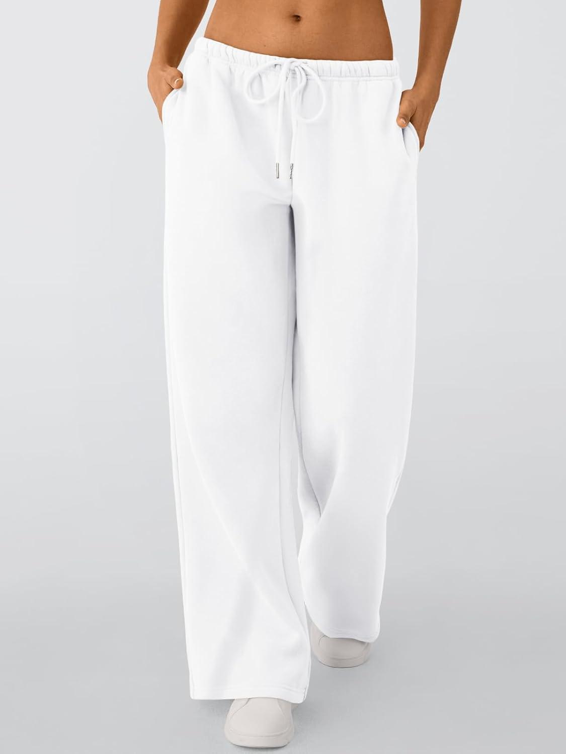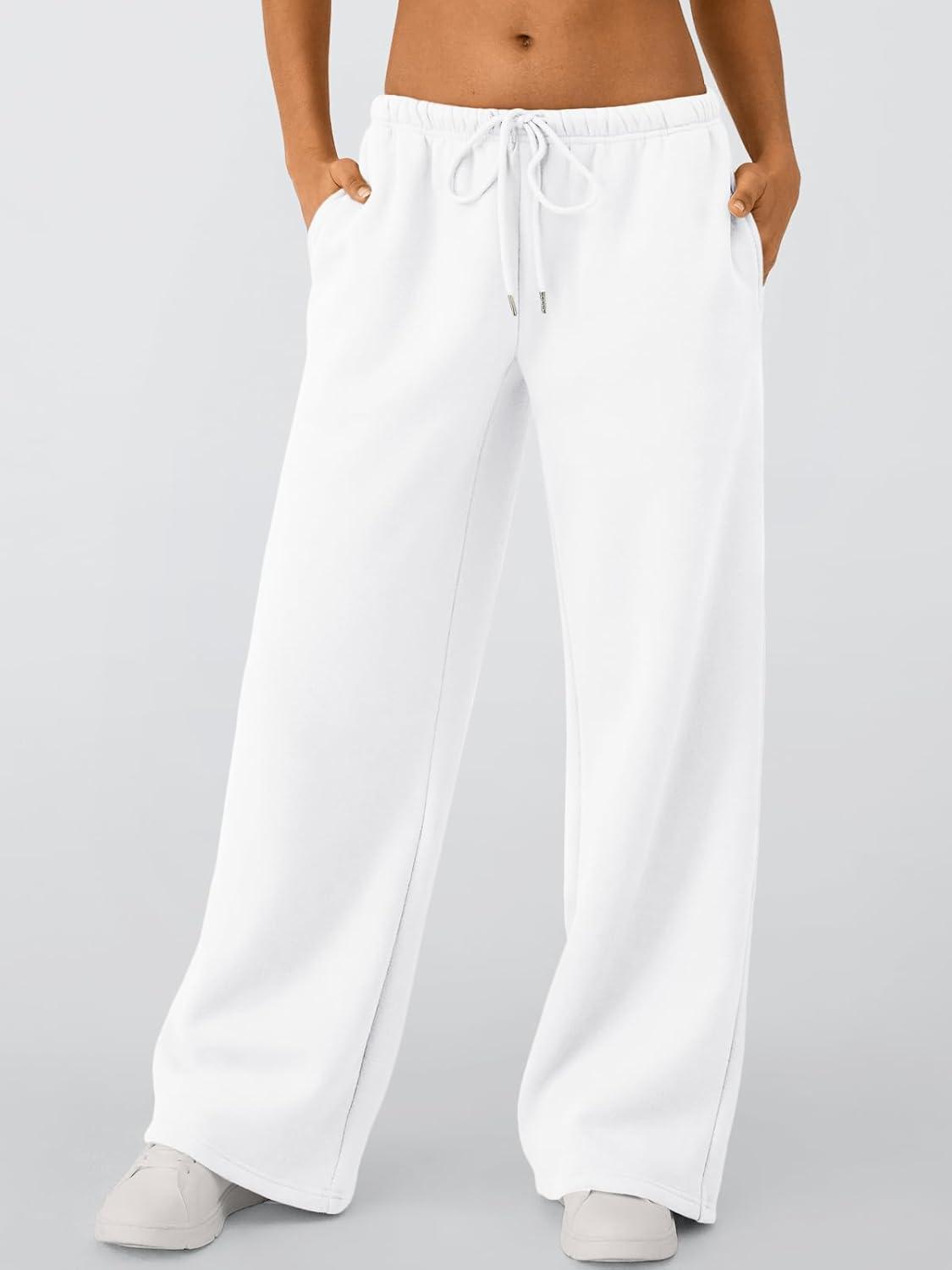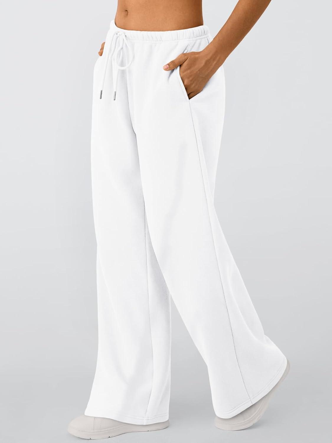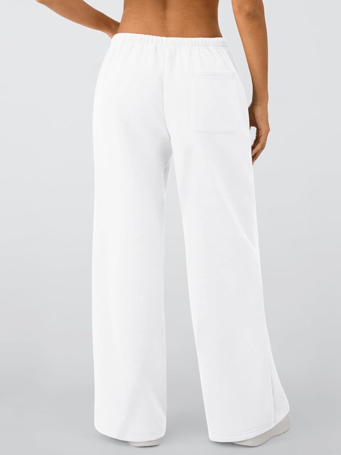 Trendy Queen Womens Wide Leg Sweatpants Baggy Drawstring Low Rise Lounge Pants 2025 Fall Joggers with Pockets(White)