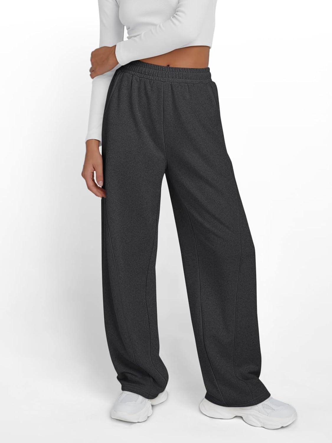 Trendy Queen Women’s Wide Leg Sweatpants Baggy Y2K High Waisted Joggers Fall Fashion Clothes with Pockets 2025(Blackgrey)