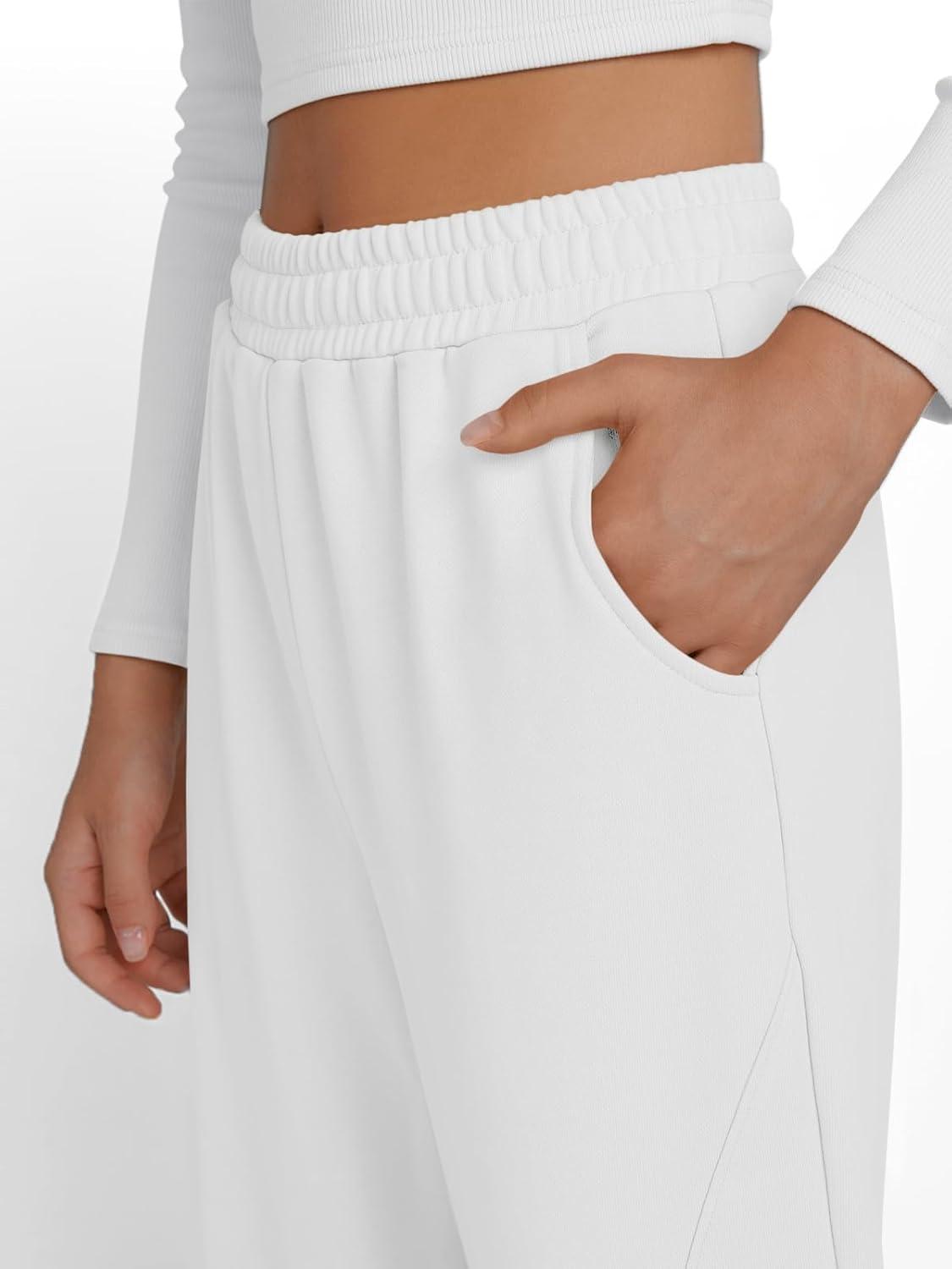 Trendy Queen Women’s Wide Leg Sweatpants Baggy Y2K High Waisted Joggers Fall Fashion Clothes with Pockets 2025(White)