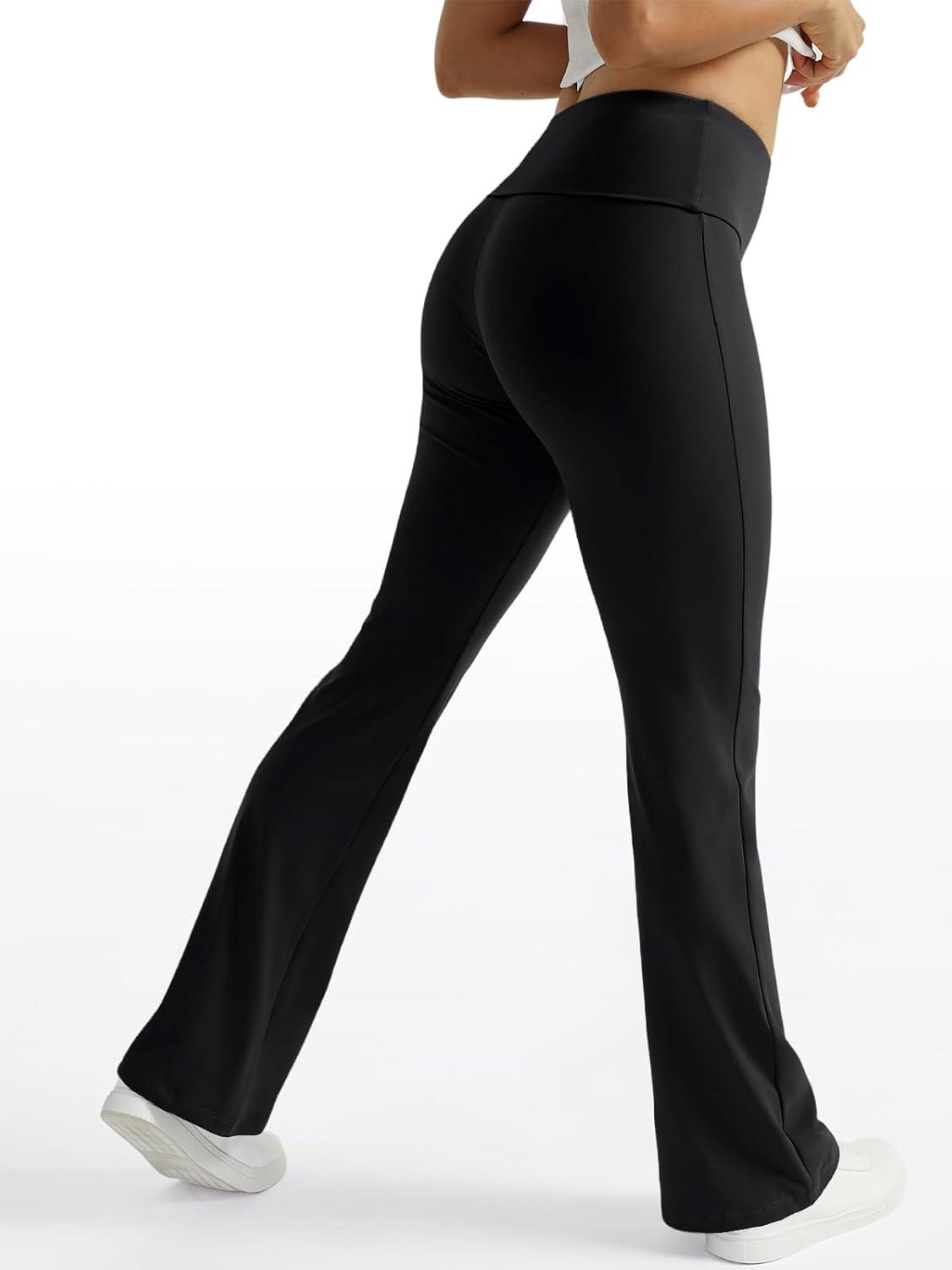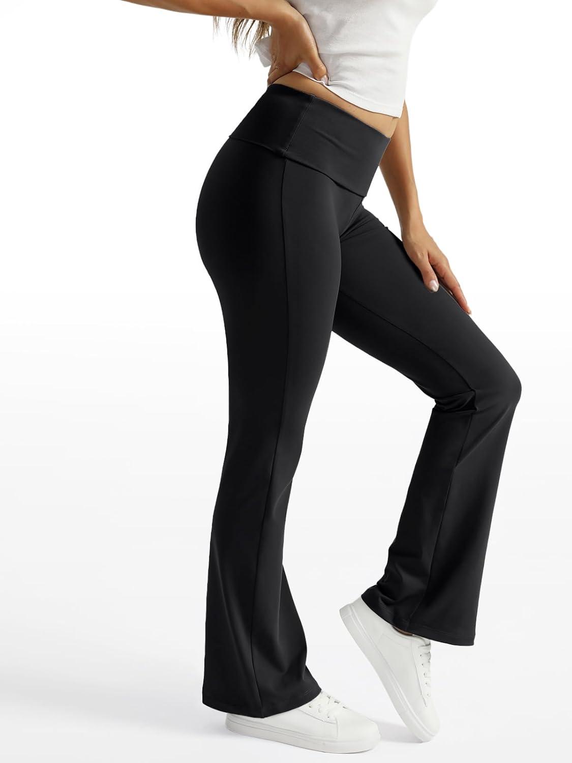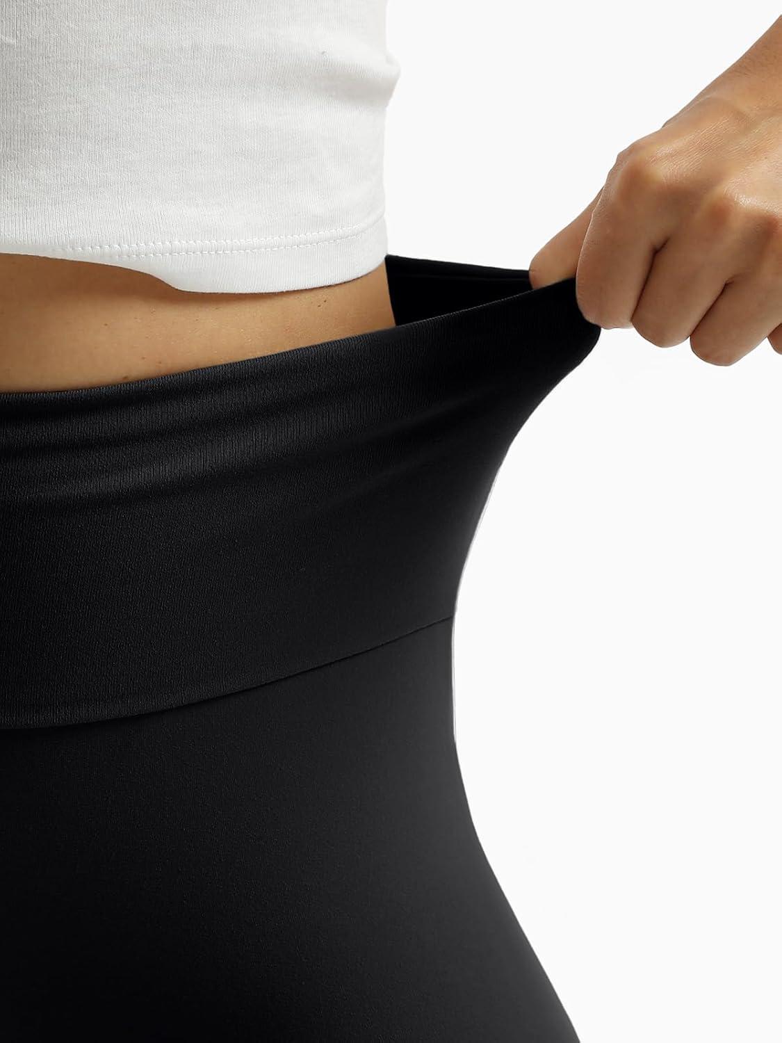 Trendy Queen Women’s Wide Leg Yoga Pants Bootcut Workout Flare Leggings Trendy High Waisted Fold Over 2025 Fall Outfits(Black)
