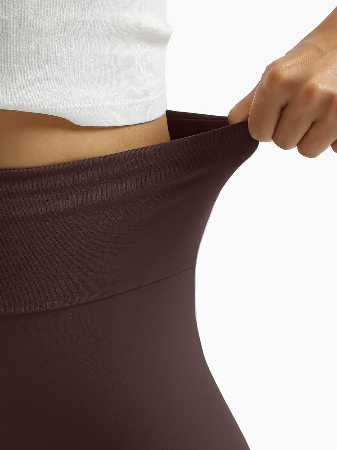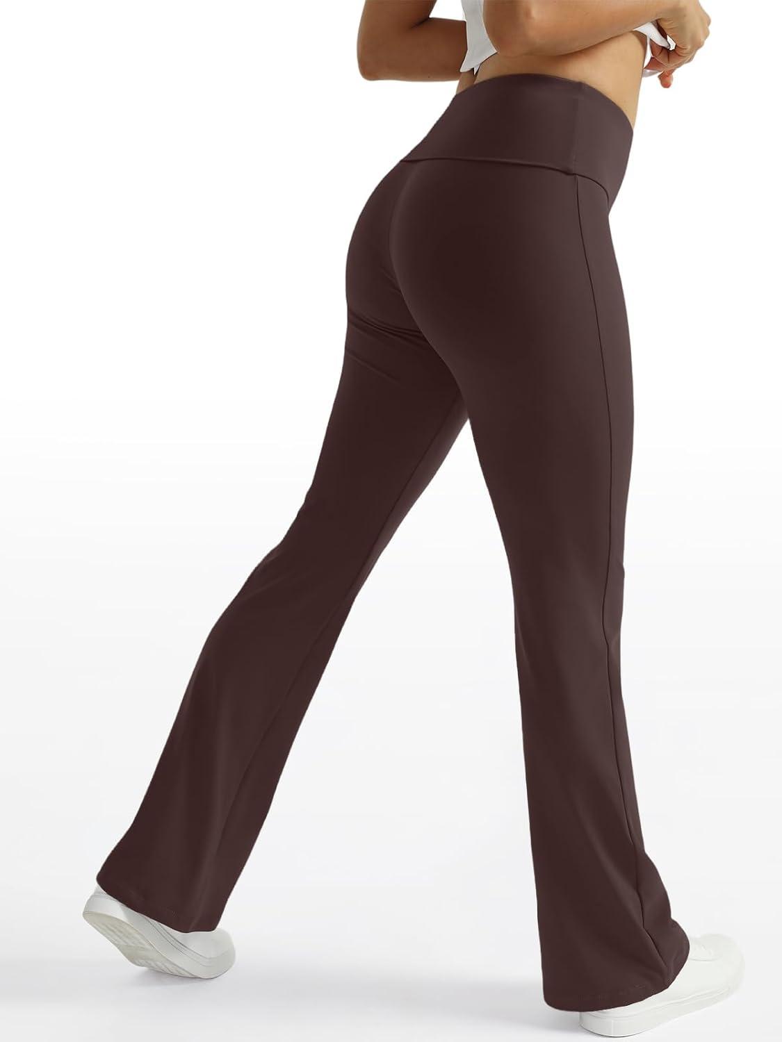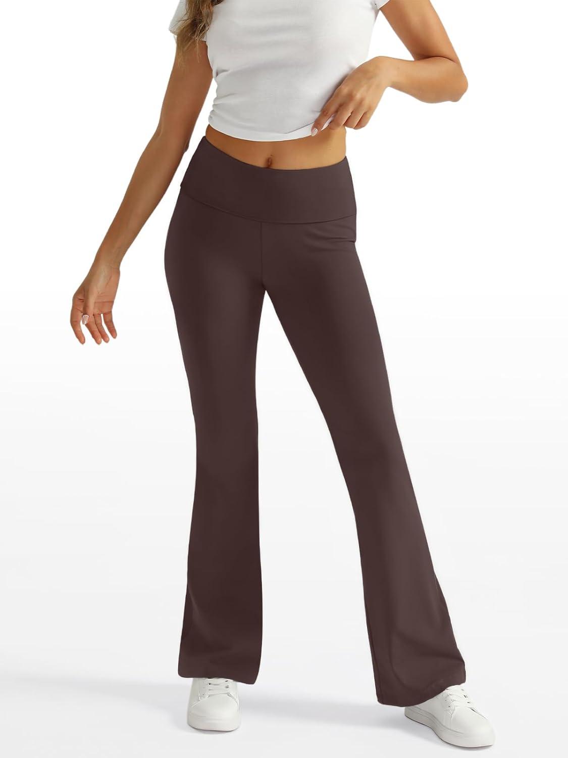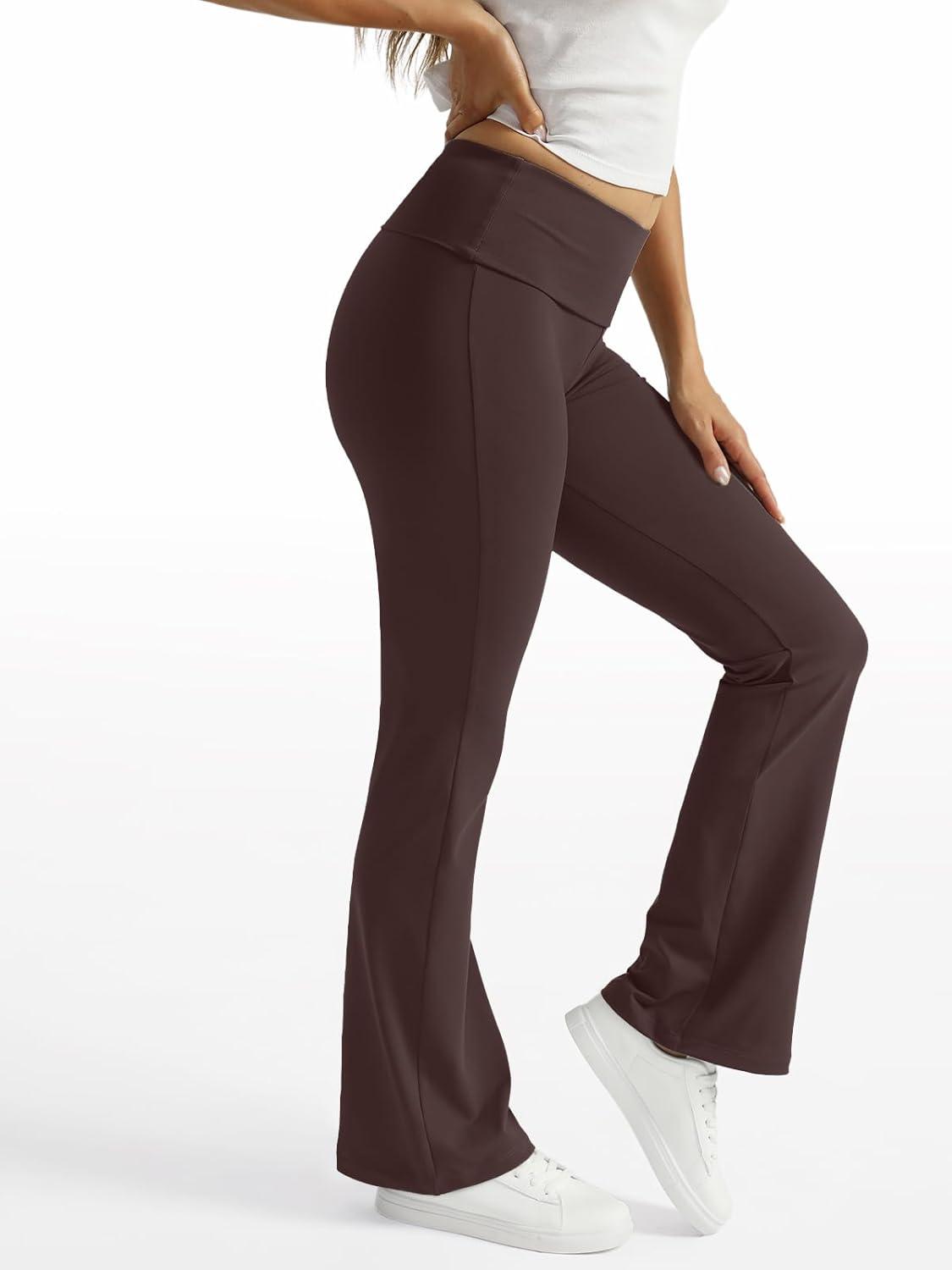 Trendy Queen Women’s Wide Leg Yoga Pants Bootcut Workout Flare Leggings Trendy High Waisted Fold Over 2025 Fall Outfits(Brown)