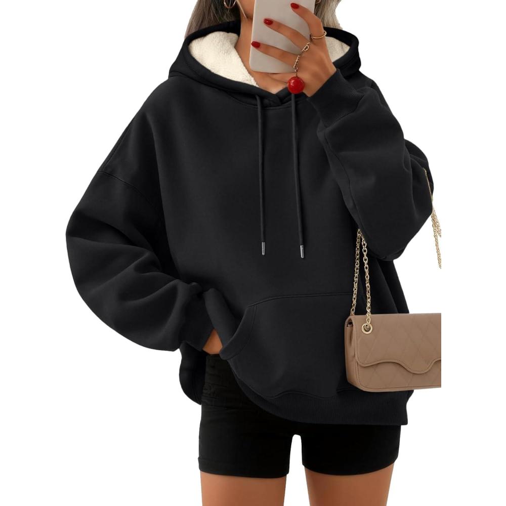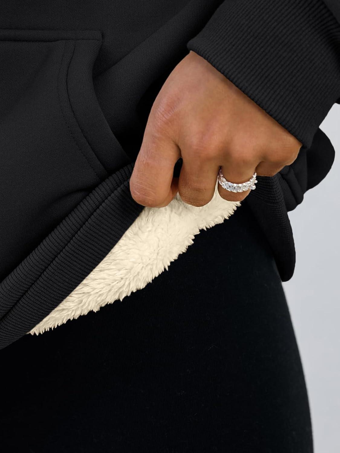 Trendy Queen Women’s Winter Fleece Sherpa Lined Hoodie Casual Warm Pullover Hooded Sweatshirt(Black)