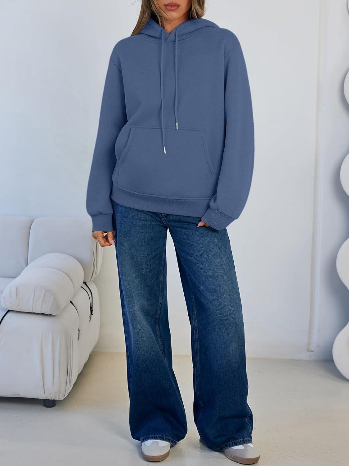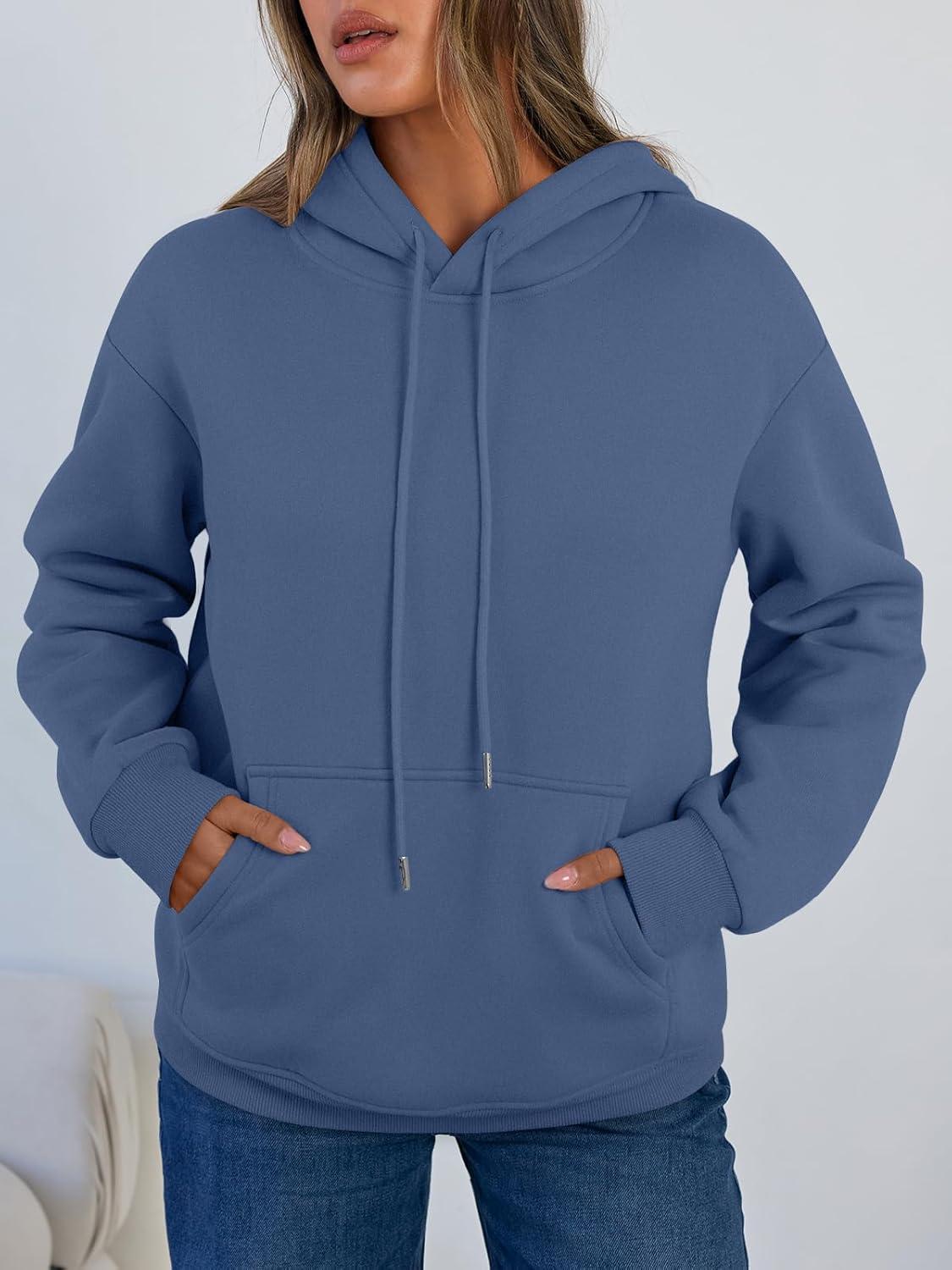 Trendy Queen Women’s Winter Fleece Sherpa Lined Hoodie Casual Warm Pullover Hooded Sweatshirt(Dusty Blue)