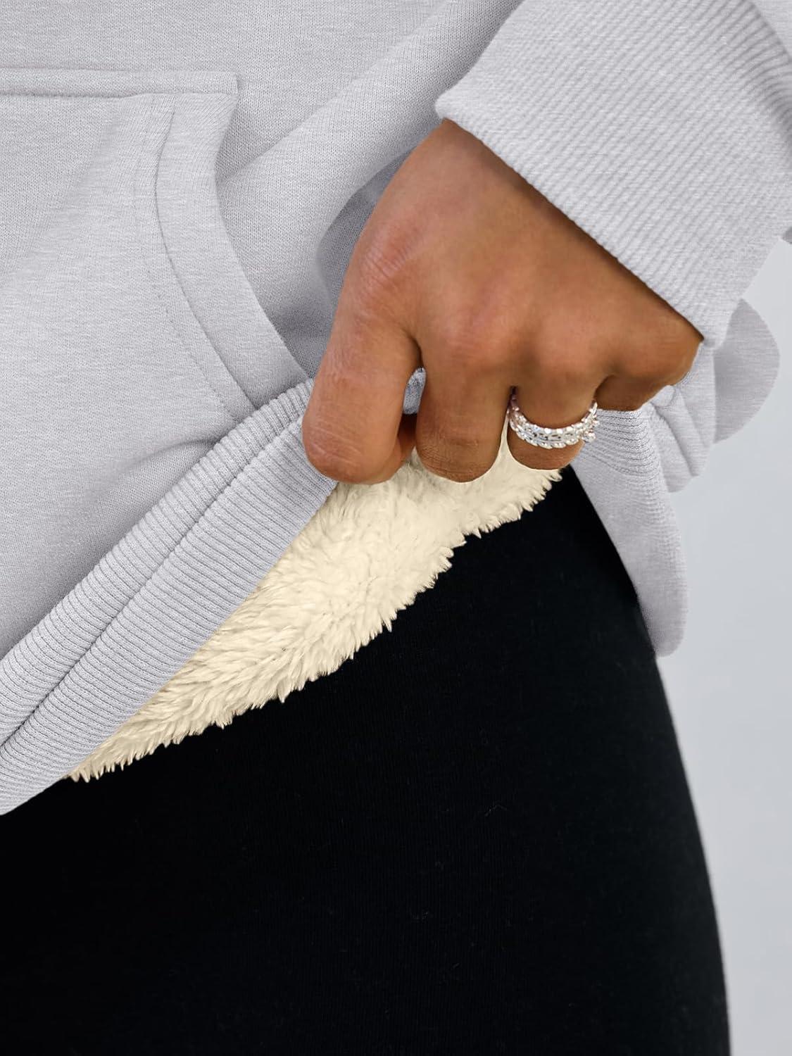 Trendy Queen Women’s Winter Fleece Sherpa Lined Hoodie Casual Warm Pullover Hooded Sweatshirt(Heather Grey)