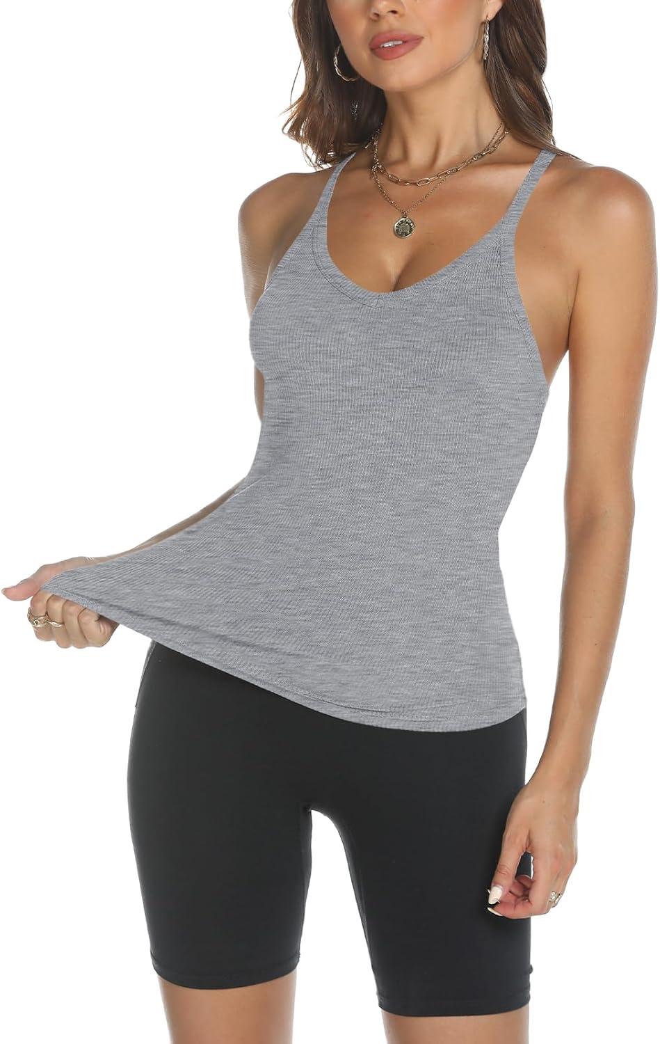 Trendy Queen Womens Workout Tank Tops Racerback Summer 2025 Camisole Top V Neck Ribbed Sleeveless Beach Fashion Clothes(Grey)