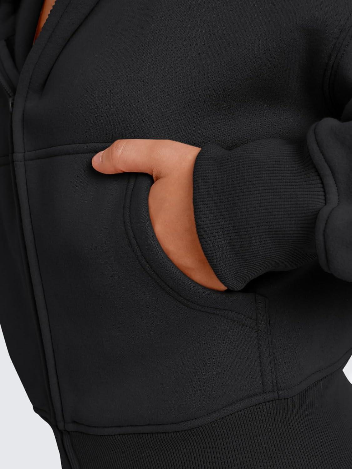 Trendy Queen Womens Zip Up Cropped Hoodies Long Sleeve Sweatshirts Casual Jackets Fall Fashion 2025 Winter Clothes(Black)