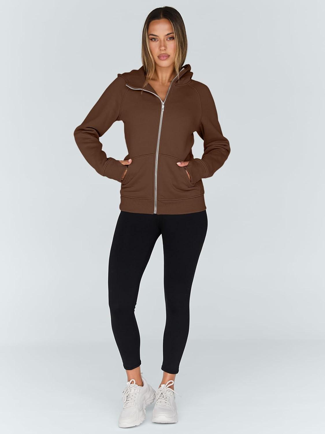 Trendy Queen Womens Zip Up Hoodies Fleece Jackets Oversized Sweatshirts Fall Fashion Outfits Sweaters Winter Clothes(Chocolate Brown)
