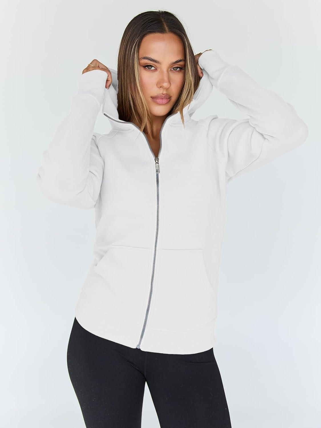 Trendy Queen Womens Zip Up Hoodies Fleece Jackets Oversized Sweatshirts Fall Fashion Outfits Sweaters Winter Clothes(White)