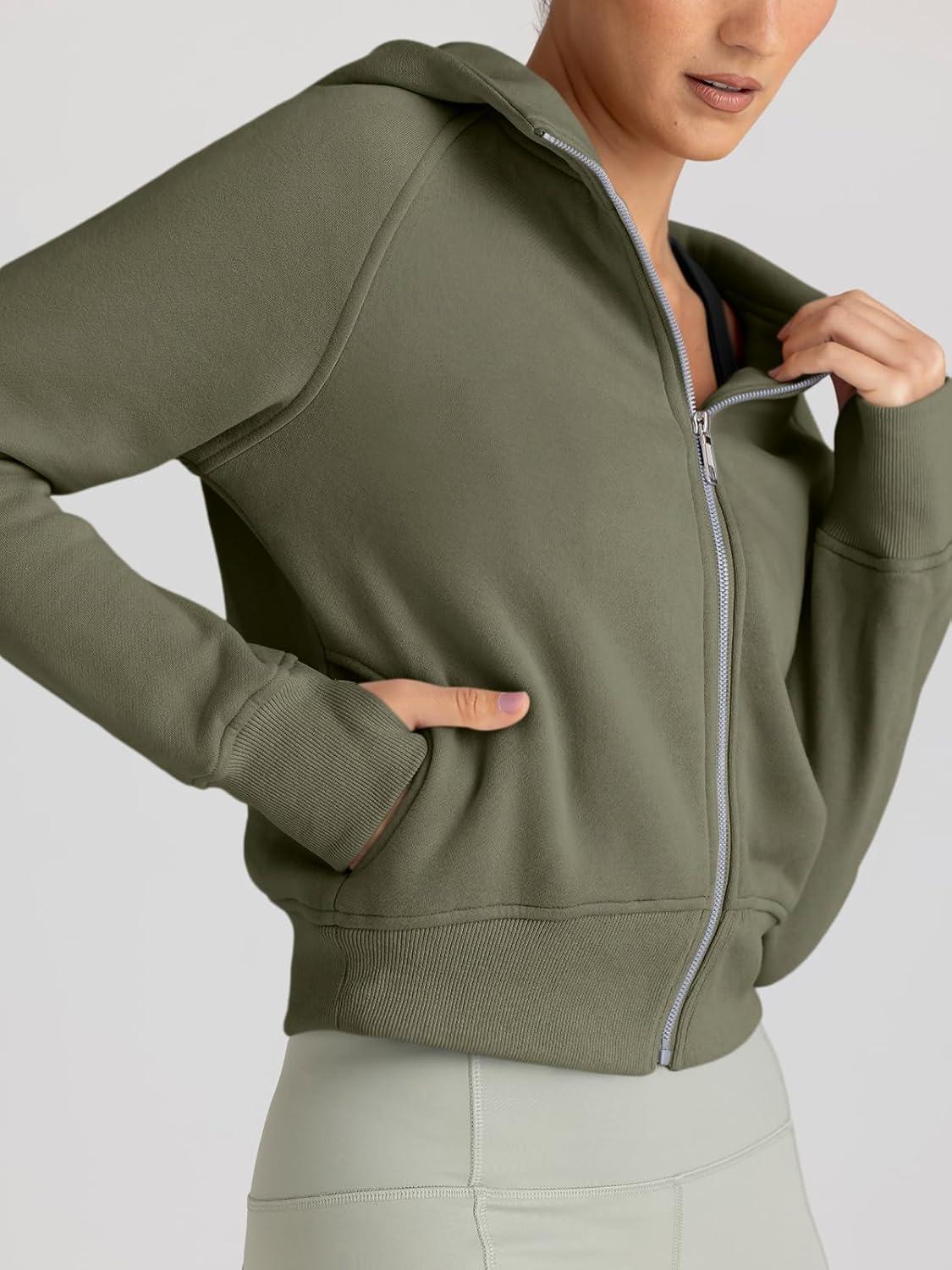 Trendy Queen Womens Zip Up Hoodies Jackets Cropped Sweatshirts Fleece Fall Outfits Casual Comfy Y2k Tops Winter Clothes 2025(Armygreen)