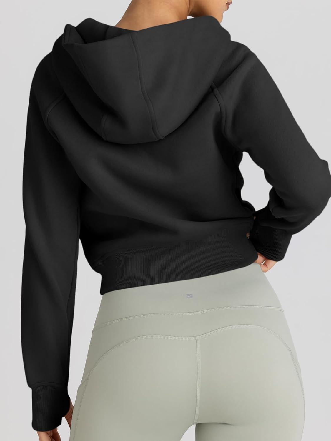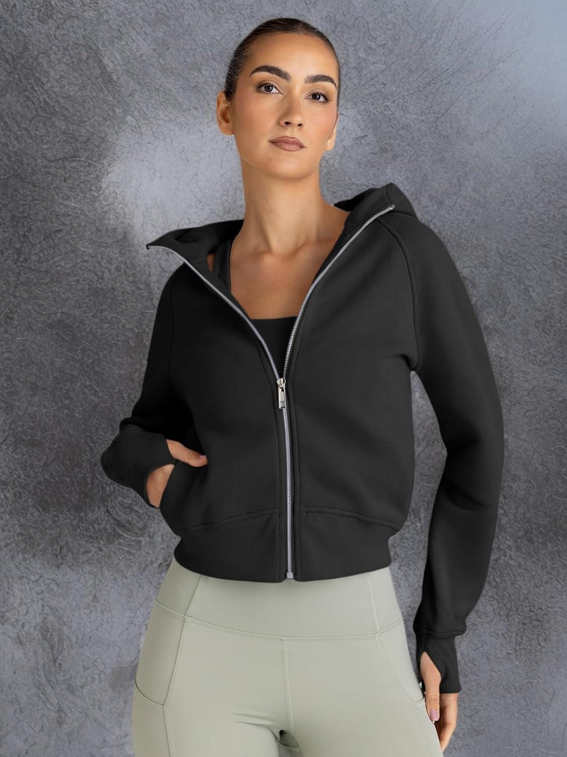 Trendy Queen Womens Zip Up Hoodies Jackets Cropped Sweatshirts Fleece Fall Outfits Casual Comfy Y2k Tops Winter Clothes 2025(Black)