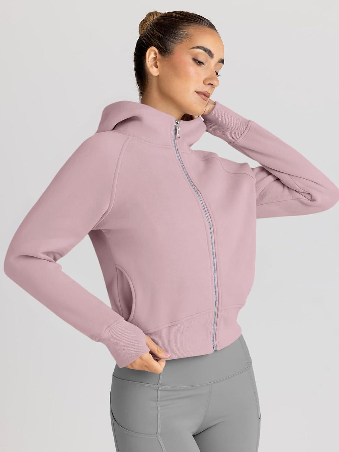 Trendy Queen Womens Zip Up Hoodies Jackets Cropped Sweatshirts Fleece Fall Outfits Casual Comfy Y2k Tops Winter Clothes 2025(Darkpink)