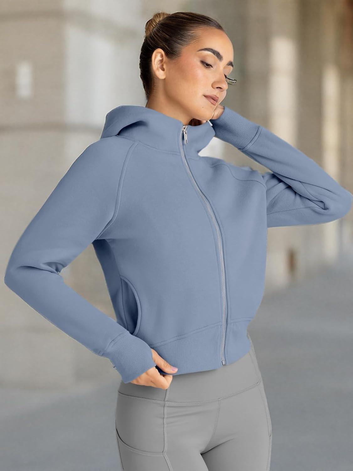 Trendy Queen Womens Zip Up Hoodies Jackets Cropped Sweatshirts Fleece Fall Outfits Casual Comfy Y2k Tops Winter Clothes 2025(Greyblue)