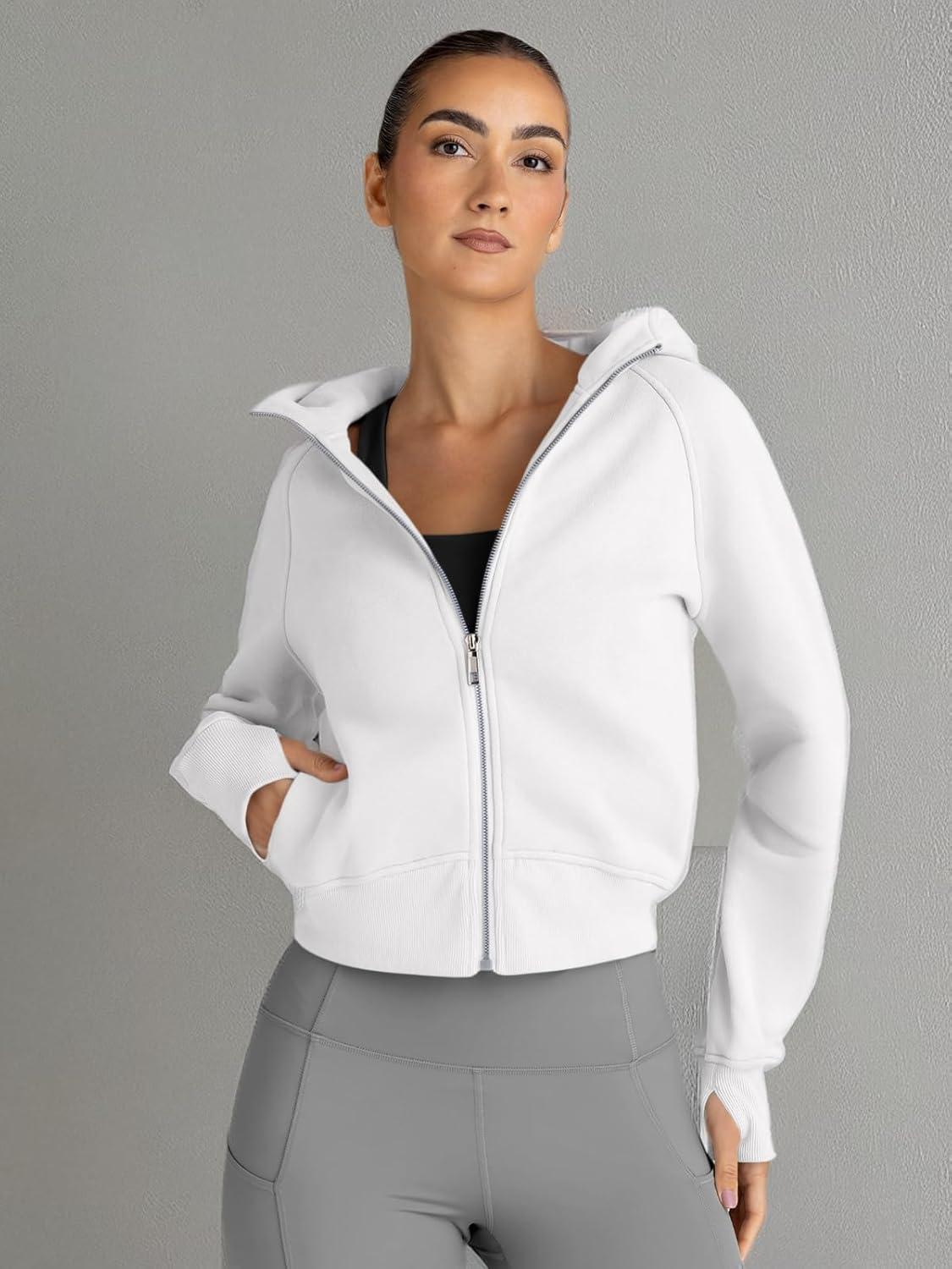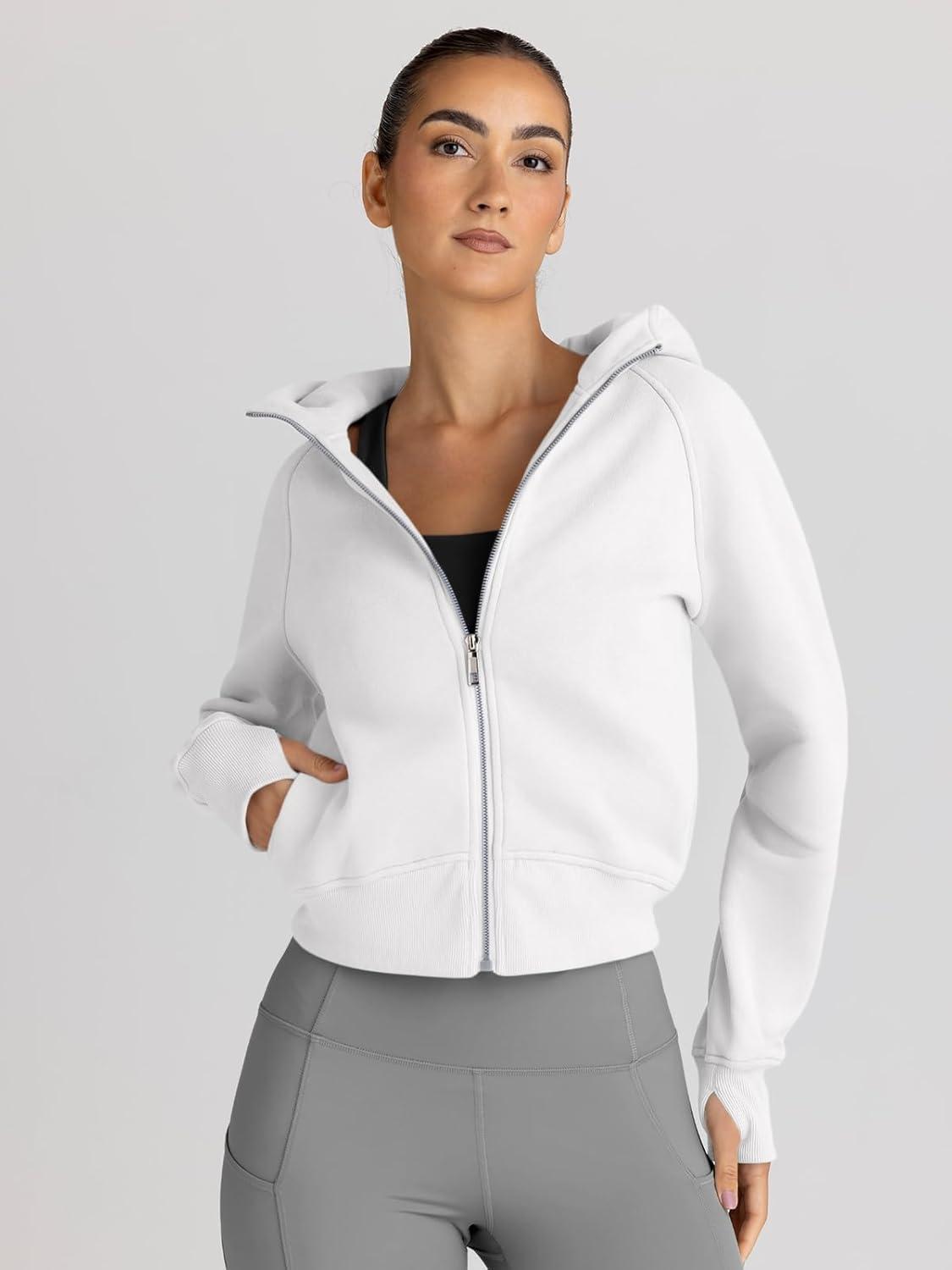 Trendy Queen Womens Zip Up Hoodies Jackets Cropped Sweatshirts Fleece Fall Outfits Casual Comfy Y2k Tops Winter Clothes 2025(White)