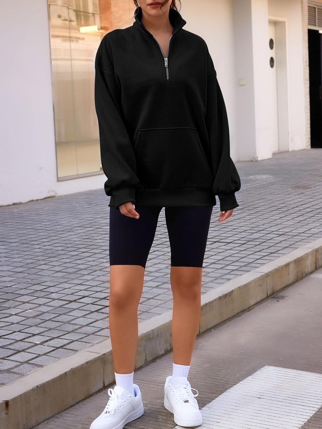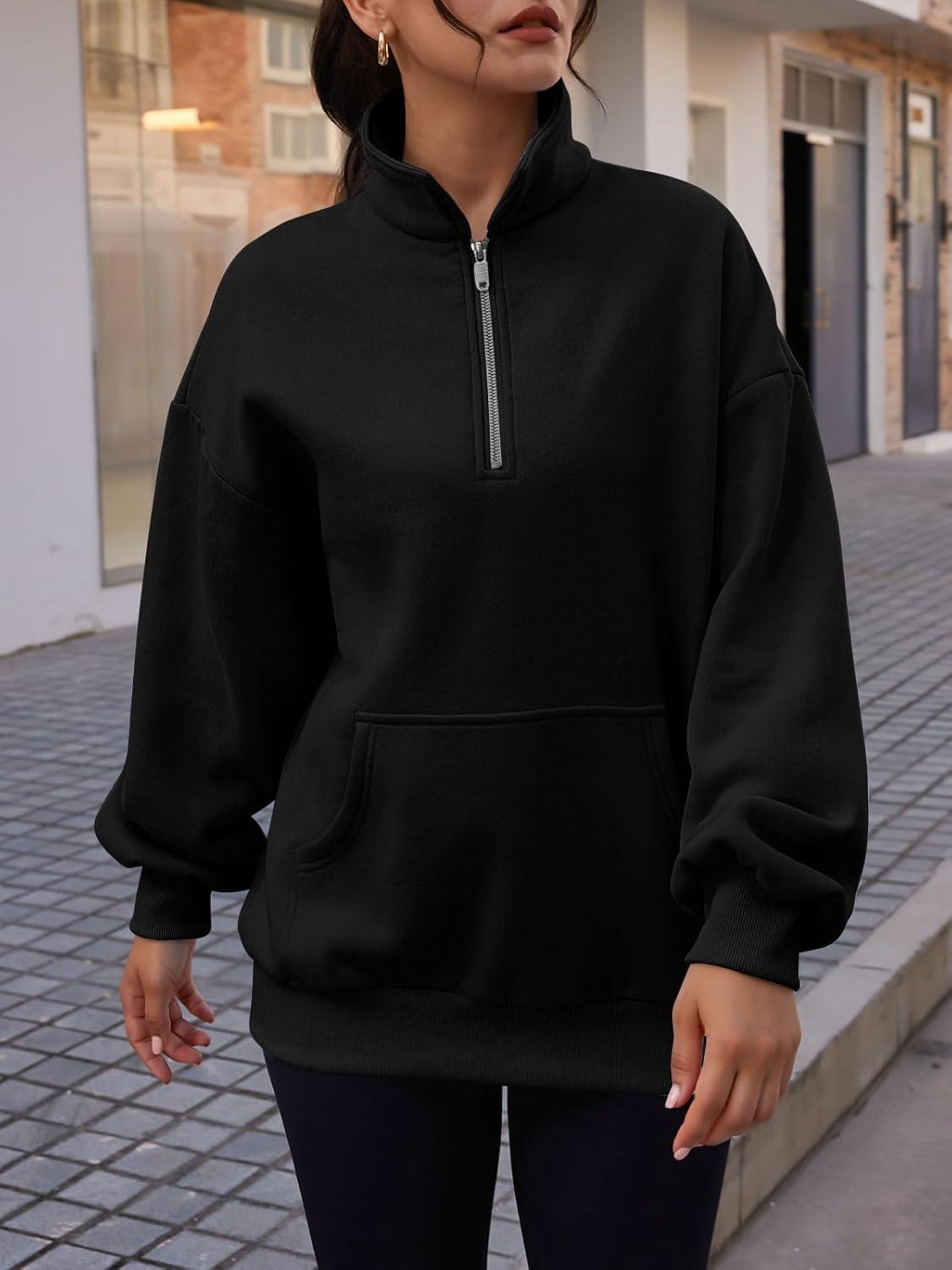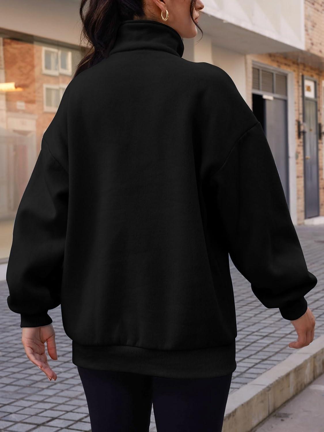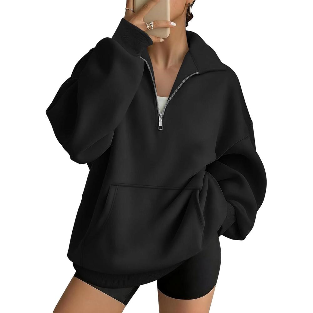 Trendy Queen Womens Zip Up Hoodies Oversized Sweatshirts Preppy Clothes Fall Teen Girls Outfits Fashion Crewneck Pullover(Black)