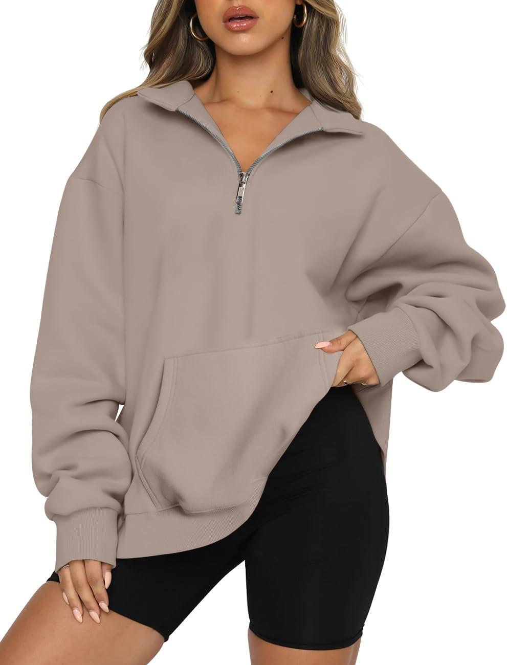 Trendy Queen Womens Zip Up Hoodies Oversized Sweatshirts Preppy Clothes Fall Teen Girls Outfits Fashion Crewneck Pullover(Coffeegrey)