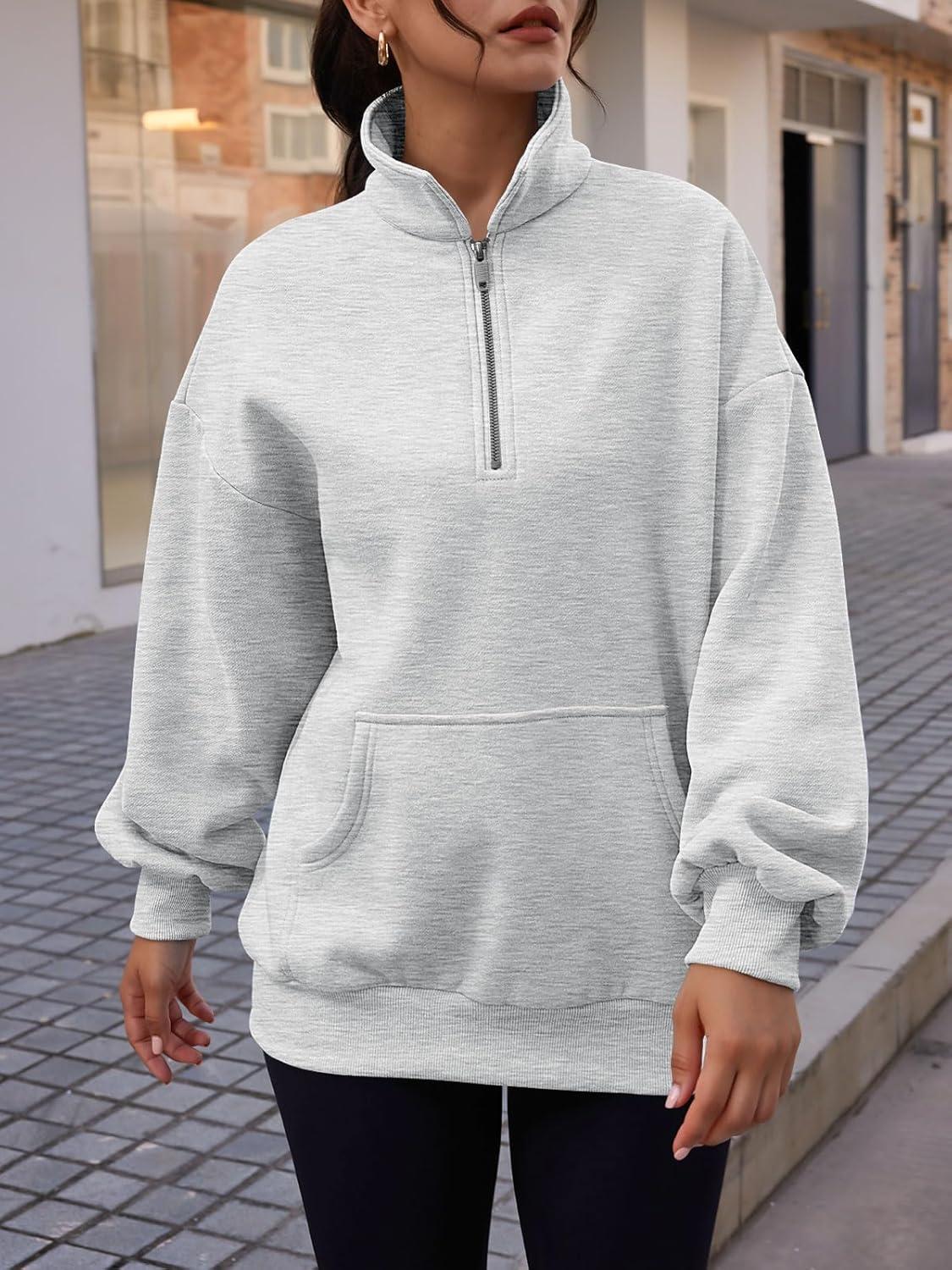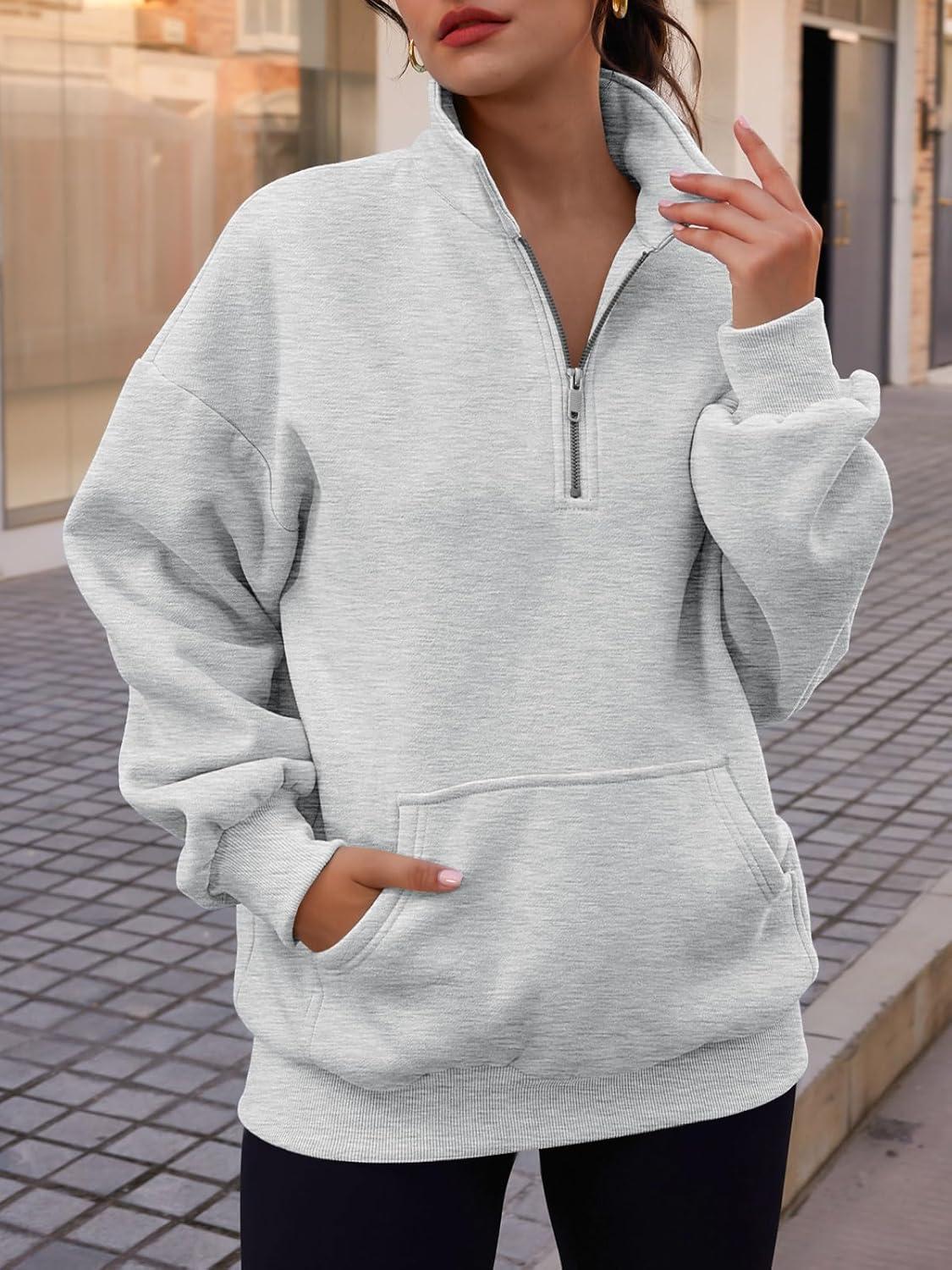 Trendy Queen Womens Zip Up Hoodies Oversized Sweatshirts Preppy Clothes Fall Teen Girls Outfits Fashion Crewneck Pullover(Grey)