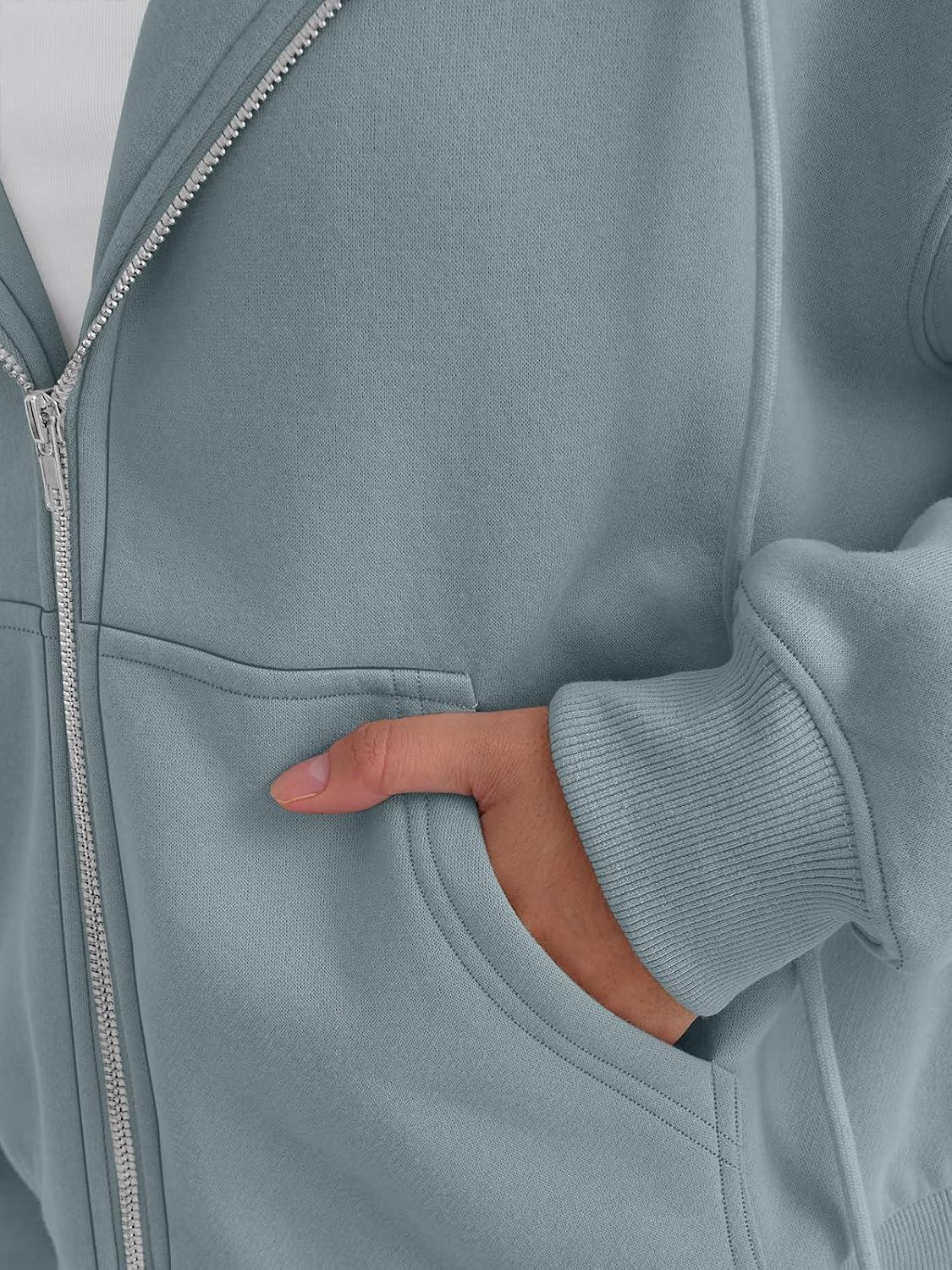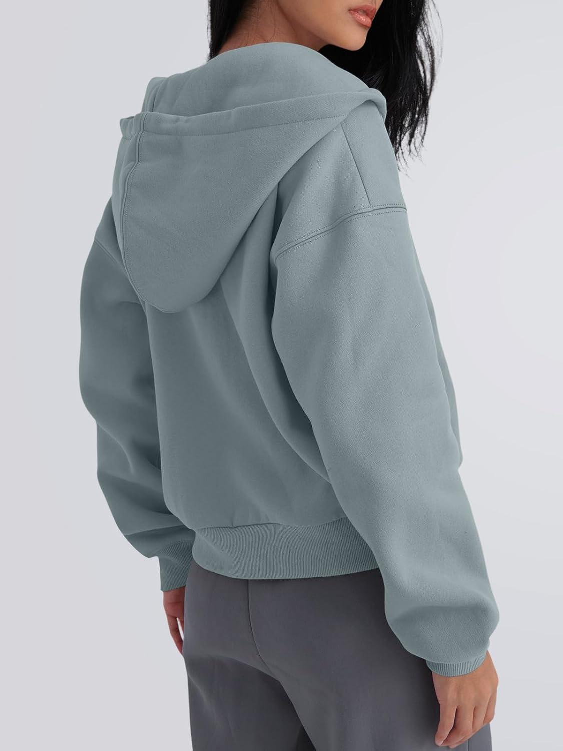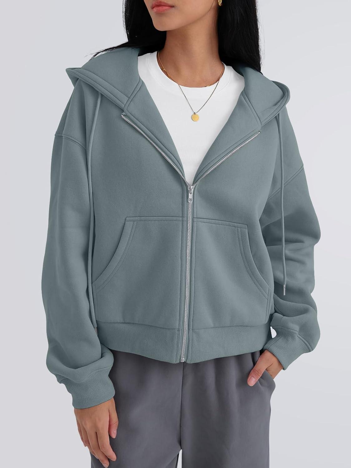 Trendy Queen Zip Up Hoodies For Women Cropped Sweatshirts Fall Fashion Outfits 2025 Y2k Fleece Teen Girls Clothes(Grey Green)