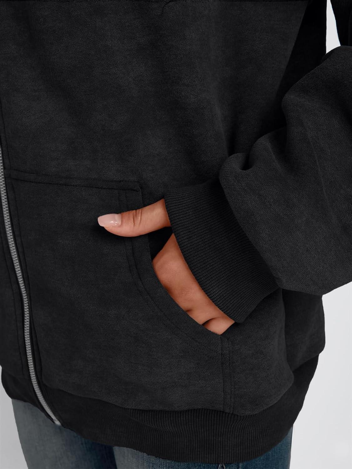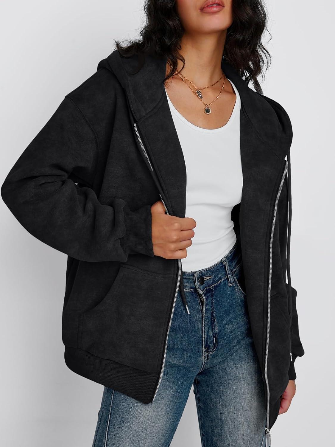 Trendy Queen Zip Up Hoodies for Women Oversized Acid Wash Sweatshirt Winter Fashion Jacket Cute Y2k Fall teen girls pullover(Black)