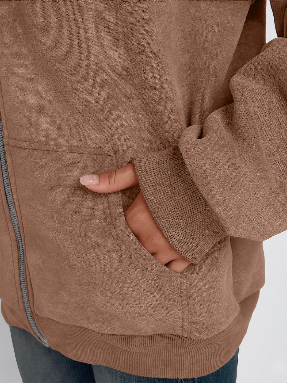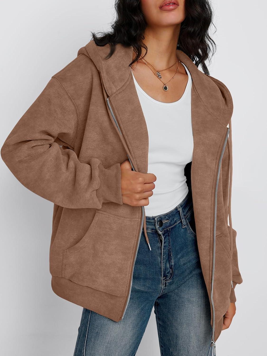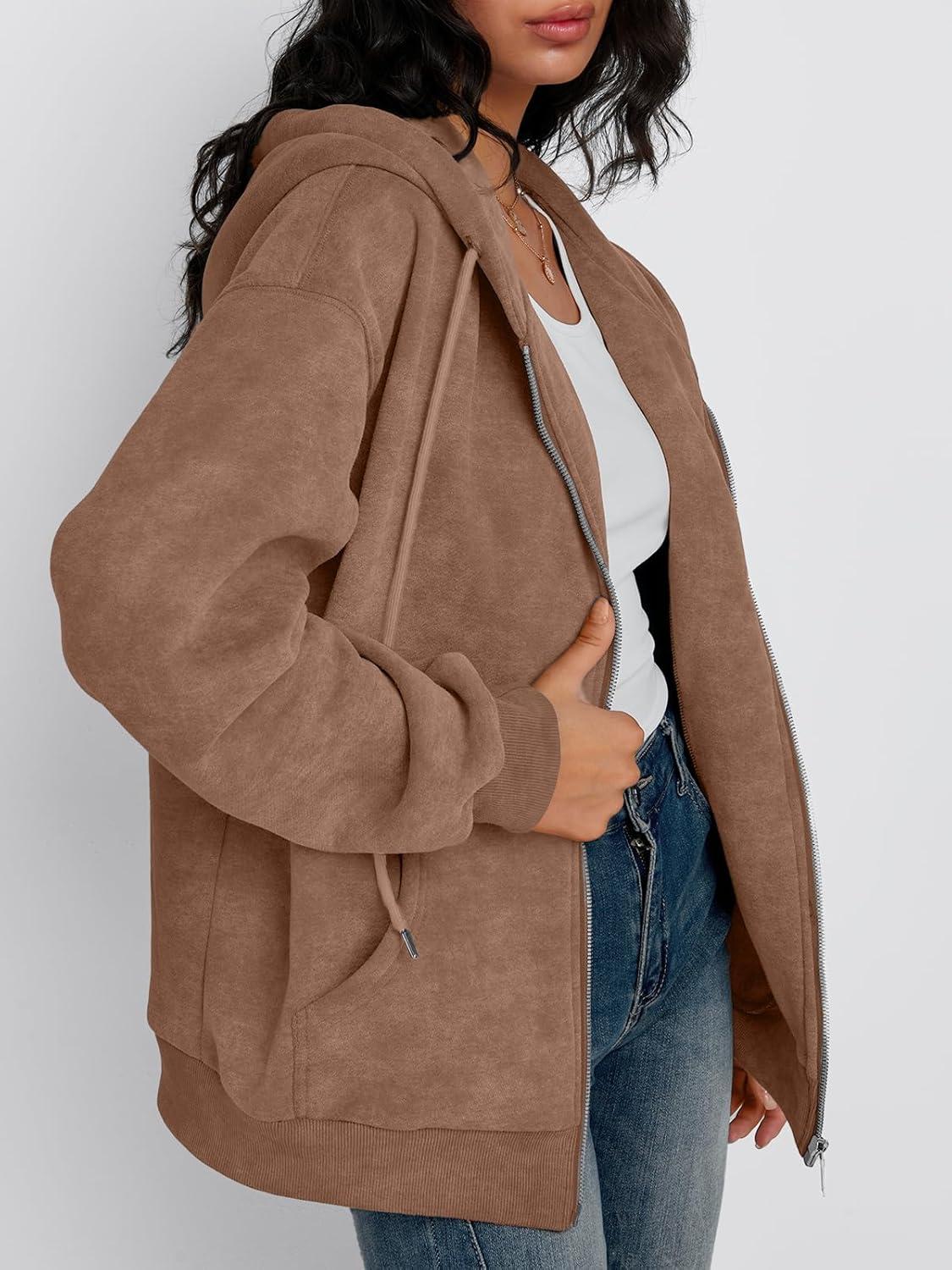Trendy Queen Zip Up Hoodies for Women Oversized Acid Wash Sweatshirt Winter Fashion Jacket Cute Y2k Fall teen girls pullover(Coffee)