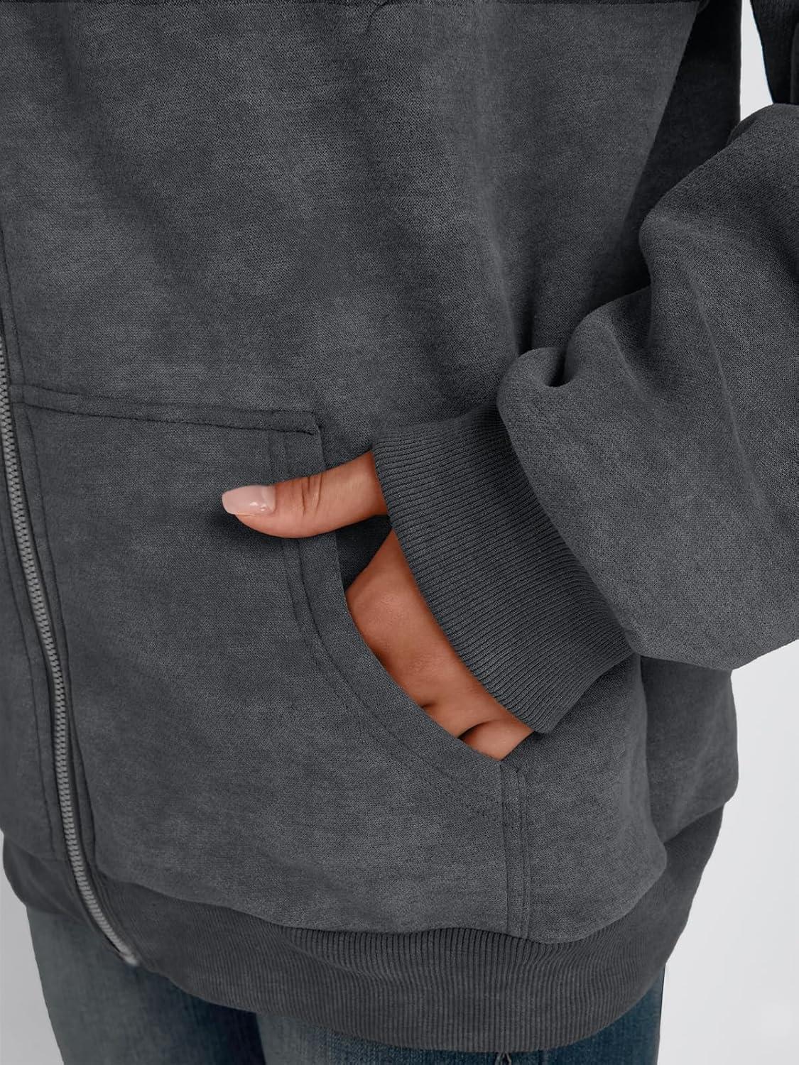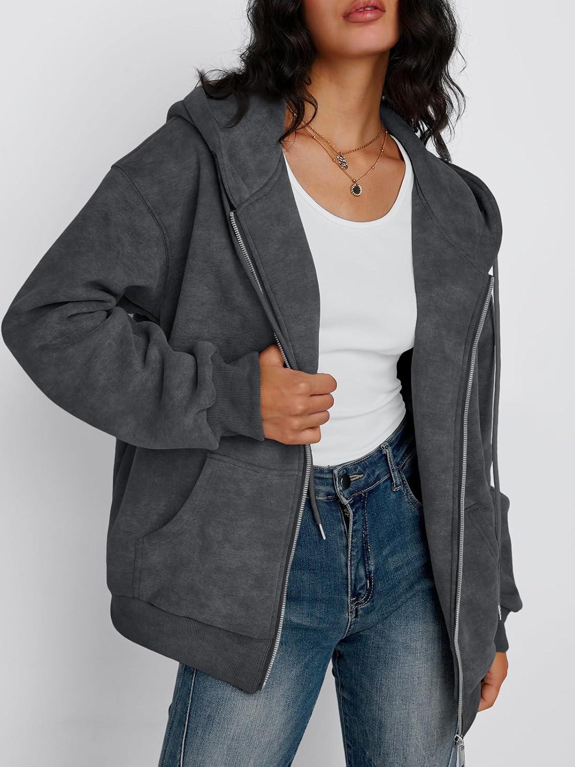 Trendy Queen Zip Up Hoodies for Women Oversized Acid Wash Sweatshirt Winter Fashion Jacket Cute Y2k Fall teen girls pullover(Grey)